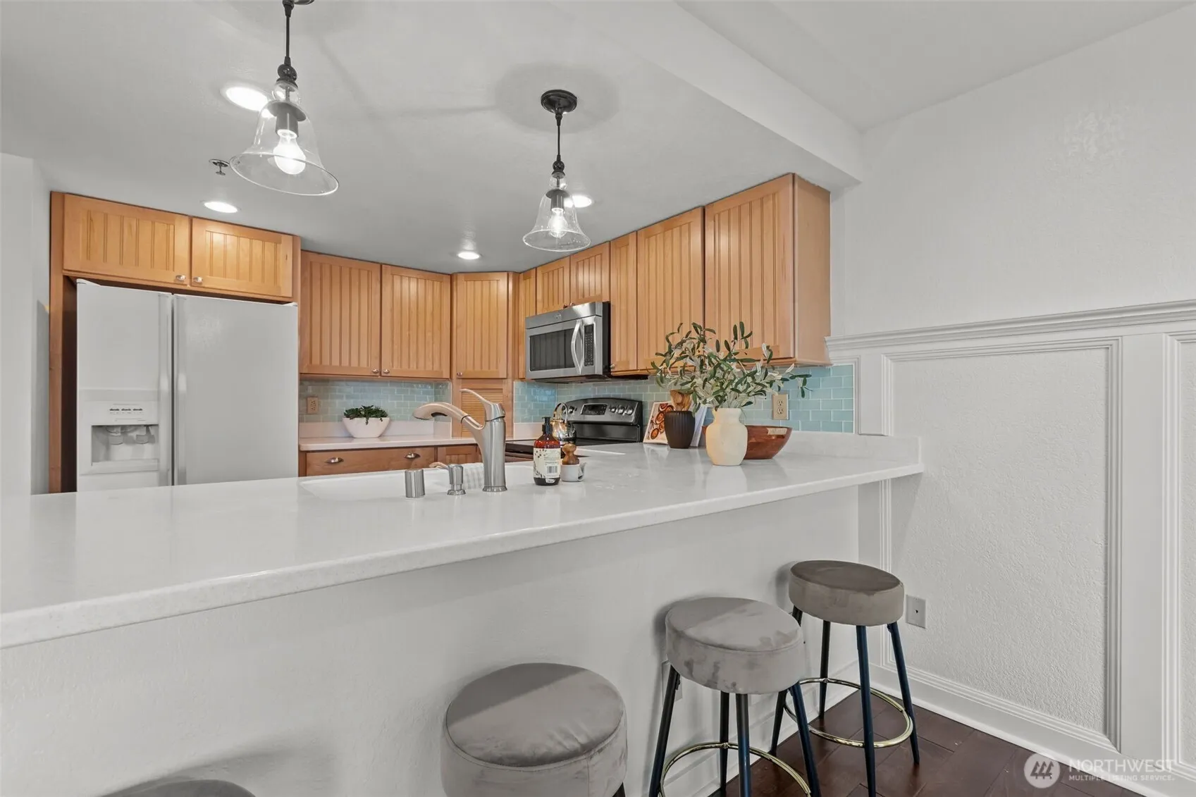 Amazing opportunity to live in a serene and secluded location with a stunning view of the sound and olympics. The living room opens to a spacious deck, perfect for entertaining on lazy afternoons. Updated kitchen, with granite countertops, stainless steel appliances, the primary suite includes an ensuite bath with a walk-in shower, both bedrooms feature walk-in closets. This condo provides luxury & convenience – storage both inside & in the secure underground garage. Walkable to Redondo Beach, and easy access to retail, parks, and major freeways, this home combines peaceful living with easy access to everything you need.