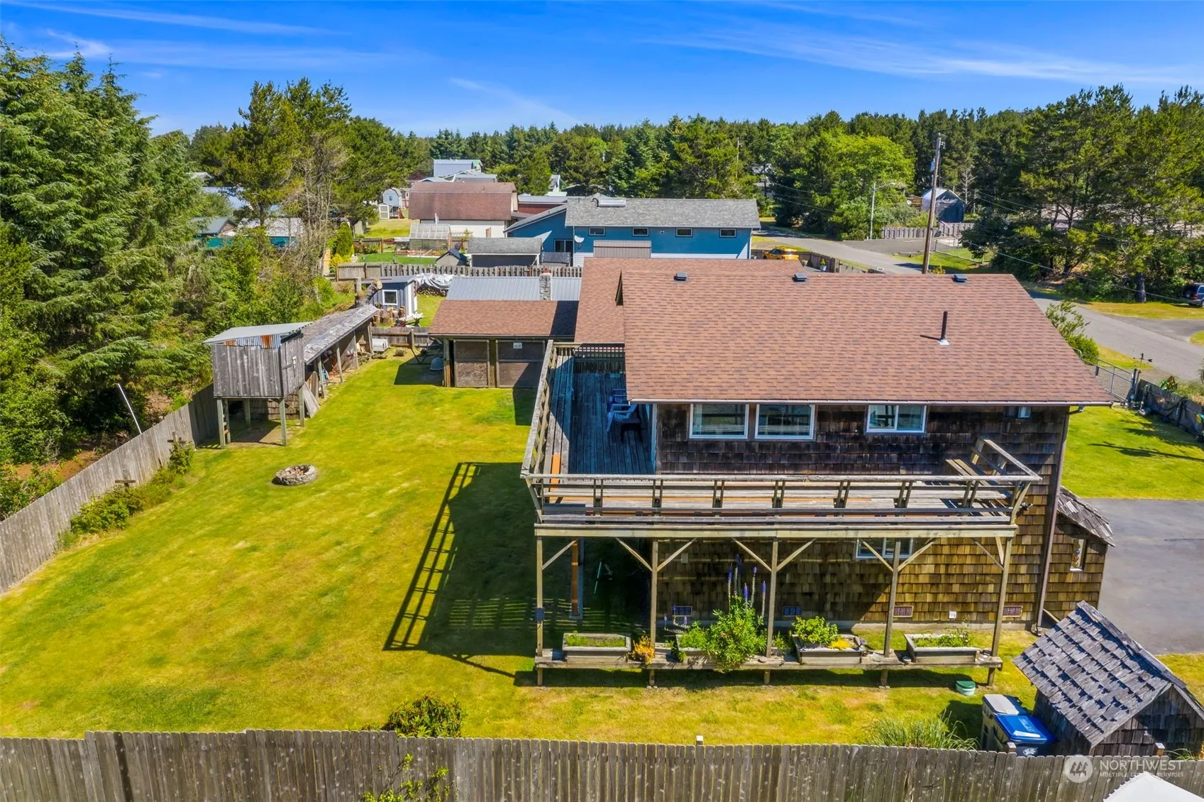 This Grayland Beach House+Shop sits on two side by side parcels & is perfect for full or part time living at the beach. A custom built 3-bedroom, 2-bathroom home with its own septic system & water meter sits on one tax parcel & a large workshop/ garage complex with its own septic & water supply sits on the other. Seller upgrades since ownership include – New windows, full re-roof of both buildings (using marine grade decking), a Daikin multi split ductless heat pump (heat and AC), and a hot water heater. You will love the fully fenced yard with its gazebo, storage buildings and RV hookups. The home’s bright open upper-level living area & kitchen plus its wrap around sundeck, jetted bathroom tub, & lower level rec room makes this a must see!