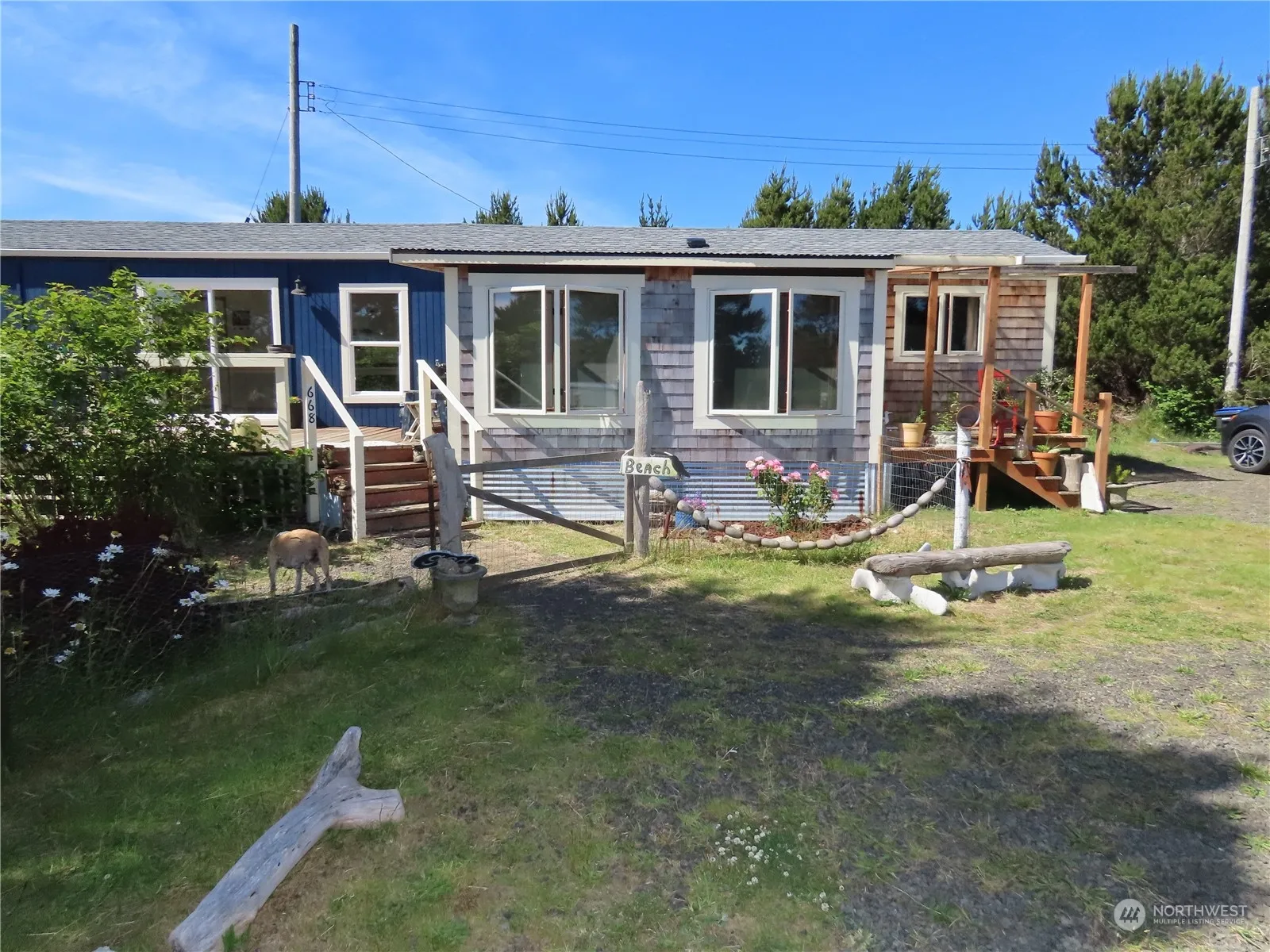 This lovely home on a good-sized property lets you see the beautiful ocean off in a distance! The home features two bedrooms and a full bathroom and a nice bonus room next to the living room! The kitchen has room for table and chairs and an eating space and there is a lovely, fenced front porch that gives you plenty of room to sit and relax! There is a nice sized storage shed out back and a large, fenced area for gardening with lots of room to grow many things! The community has a nice beach trail to get to the lovely ocean beach & there is 18 miles of amazing ocean front land to enjoy playing on! Plenty of room to add a nice shop on the property & the home has some nice updates! It would be a good nightly rental home or personal residence!