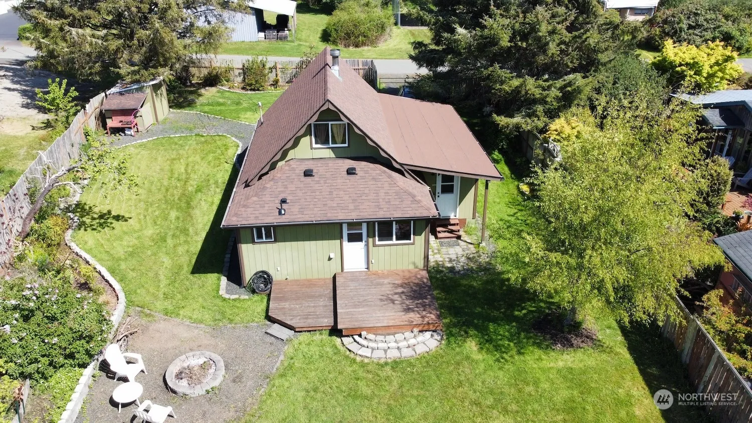 Charming, versatile coastal bungalow boasts stunning wood ceilings and an expansive A-frame attic conversion with territorial views. The main floor offers two more spacious bedrooms, each with exterior doors, perfect for hosting guests. Many recent updates include new roof, fridge, paint, hardwood floors, wood stove, and plenty of off-street parking. Large, fully-fenced yard includes a cozy fire pit, covered porch, south-facing deck, and low-maintenance native and edible landscaping (apples, pears, strawberries, figs, huckleberries, etc). Home is in great condition and ready to occupy immediately. Your dreamy beach cottage awaits!