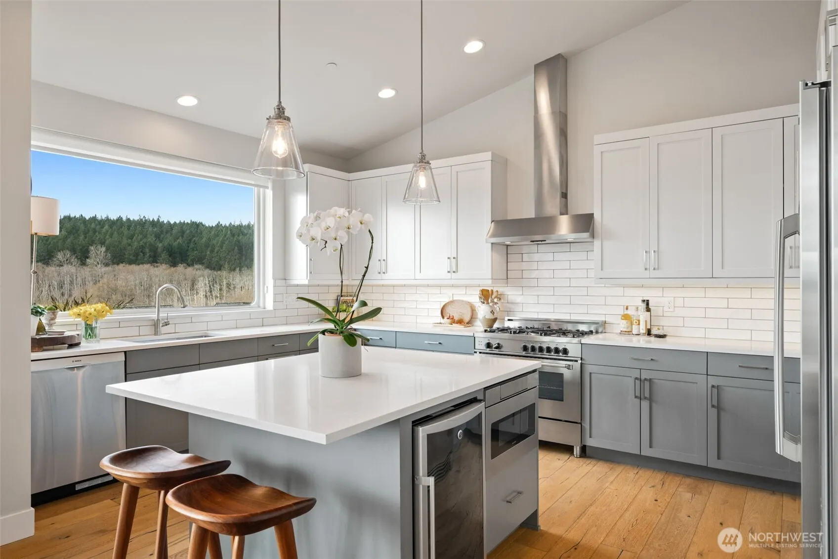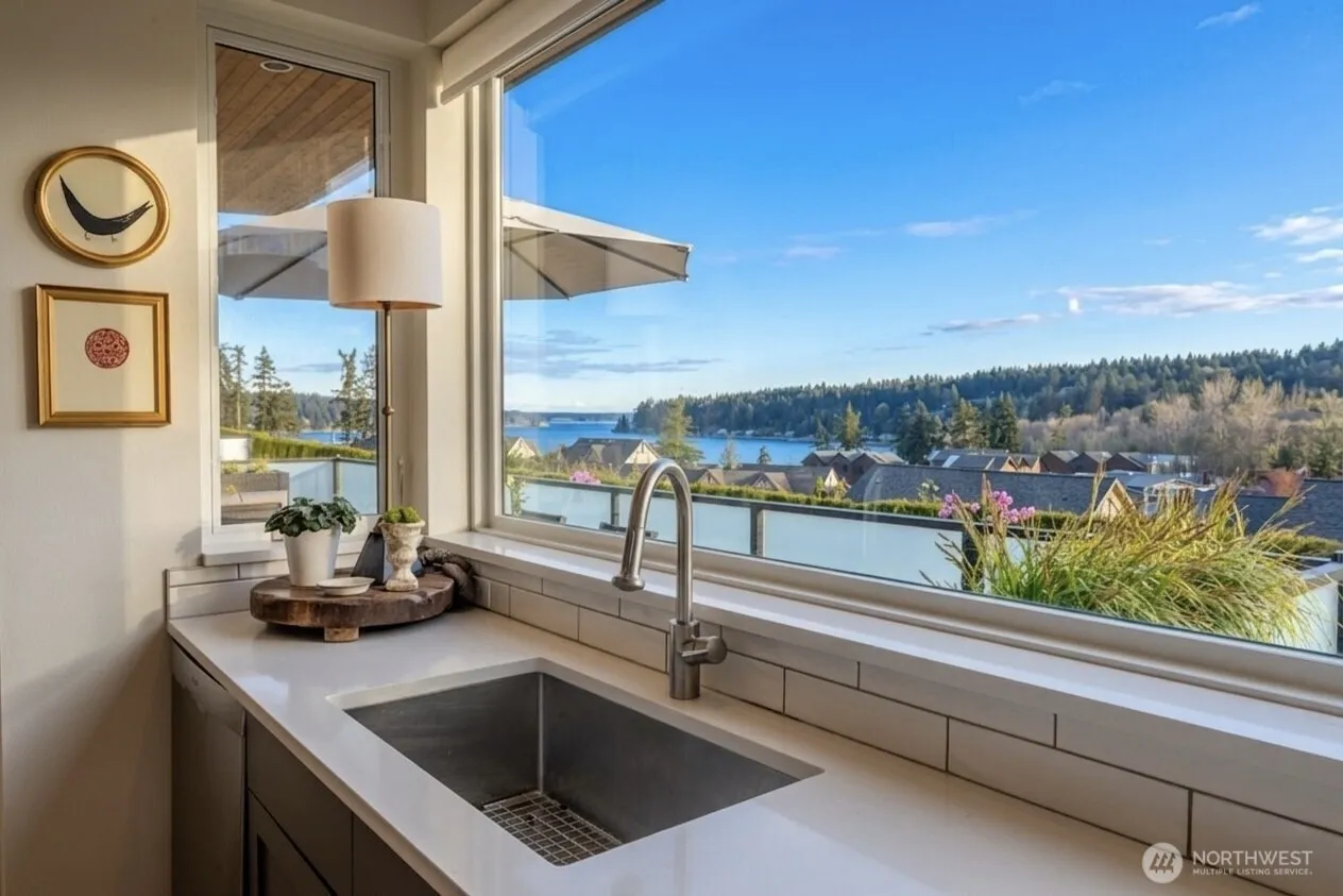 Sunset views over Rich Passage and effortless coastal luxury define this light-filled townhome in Pleasant Beach Village- a rare opportunity to own in the first row of Dotson Loop, where homes seldom come to market. The kitchen is designed for gathering—featuring quartz counters, statement tile, an oversized island, and a Bertazzoni range—flowing into the dining and living spaces and out to a sun-drenched, west-facing deck where ferries pass and sunsets steal the show. Clean architectural lines, soaring ceilings, and expansive windows invite the outdoors in—enhanced by a 370-square-foot covered deck that can be enjoyed three seasons a year. Warm finishes create an elevated yet welcoming feel, while the living room is anchored by a stunning limestone-surround fireplace, adding a timeless focal point. A second private patio offers a peaceful outdoor escape. Thoughtful details include two large closets designed to be elevator-ready, abundant storage, and a two-car garage with one additional covered parking space. Beyond the home itself, what truly sets this property apart is the lifestyle. Set in vibrant Pleasant Beach Village, enjoy seamless access to dining, shops, bakery, historic theater, pool and spa along with nearby Fort Ward Park, beach access, trails, and lush gardens—an unmatched blend of convenience and elevated coastal lifestyle in one of Bainbridge Island’s most sought-after communities.