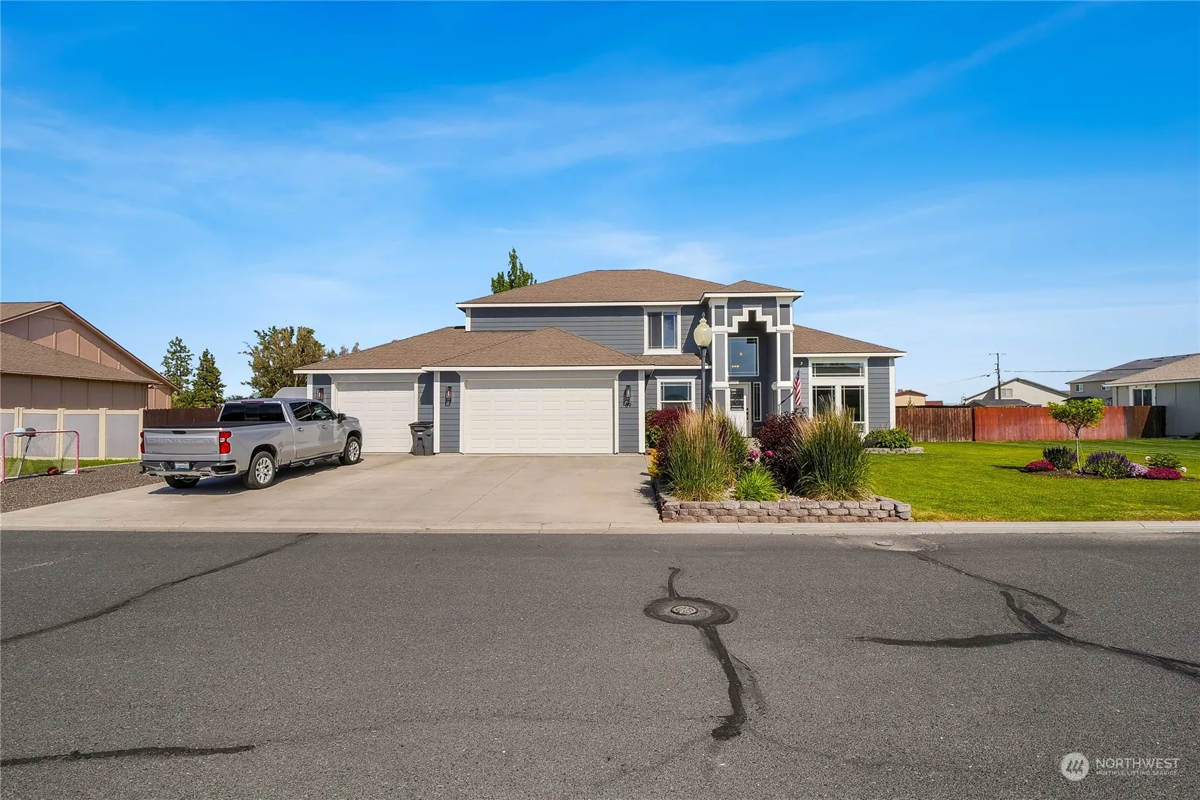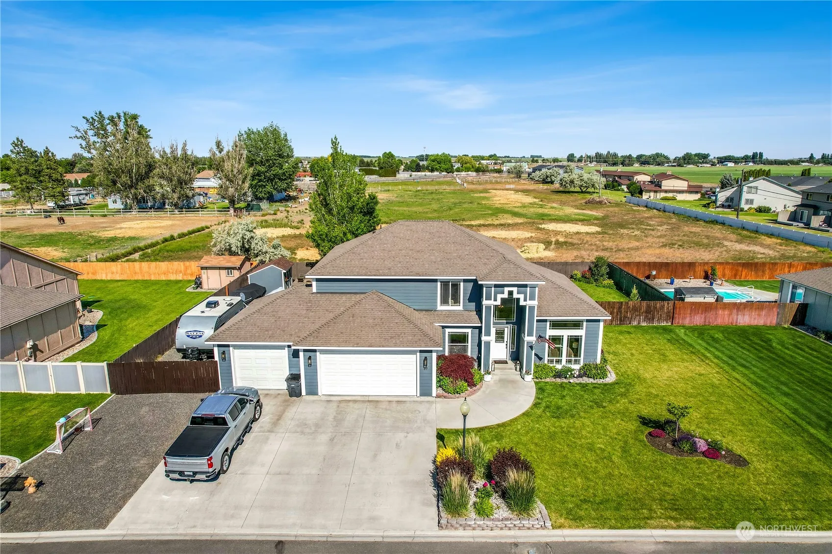Welcome to this stunning home in Pelican Point! Situated on a spacious lot with an east-facing backyard, you’ll relish the cool, shaded evenings. Inside, the family and dining rooms boast vaulted ceilings, complemented by tile and laminate flooring throughout the main level. The kitchen and half bath feature elegant quartz countertops. Cozy up by the propane fireplace in the living room, which opens to the backyard through a sliding glass door. The expansive primary suite offers a luxurious 5-piece bath, an oversized bedroom, and a generous walk-in closet. Additional amenities include a 3-car garage, RV parking, fenced backyard with covered patio, and a storage shed. This home is truly a fantastic find!