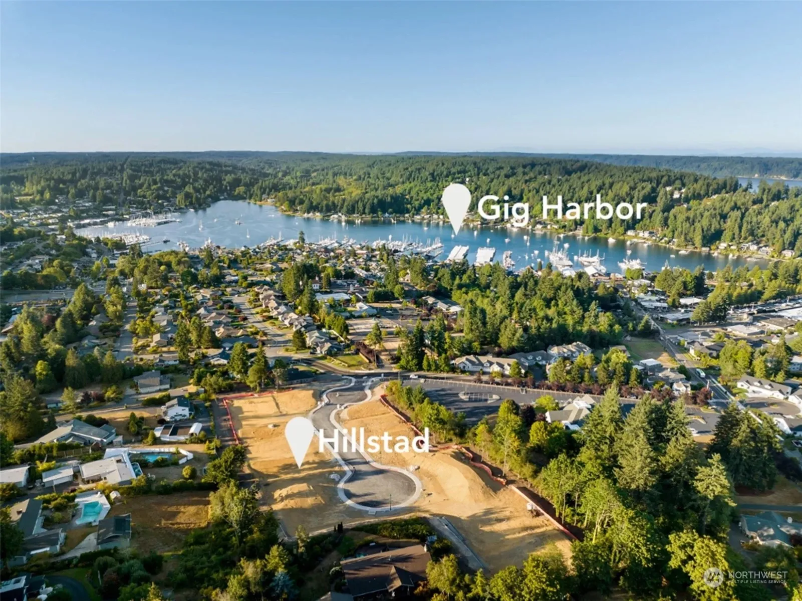 Single story new home with great walkability to Downtown Gig Harbor. Sought-after gated community of Hillstad by RM Homes. Offering 2038 sq ft with 3 bedrooms, 2 baths & 2 car garage. Covered outdoor patio w/ overhead heater for great year round entertaining. Large kitchen with slab quartz counter, soft close cabinets & full height tile backsplash. Open concept to great room with liner gas fireplace w/ tile surround and floating mantel. Primary bedroom is a treat with a spa-like bath including heated floors and walk-in shower w/ frameless door and freestanding soaking tub. Professionally landscaped front and back with sprinkler. Photos are not of actual home. Home is under construction. Est. Nov 2024 finish date.