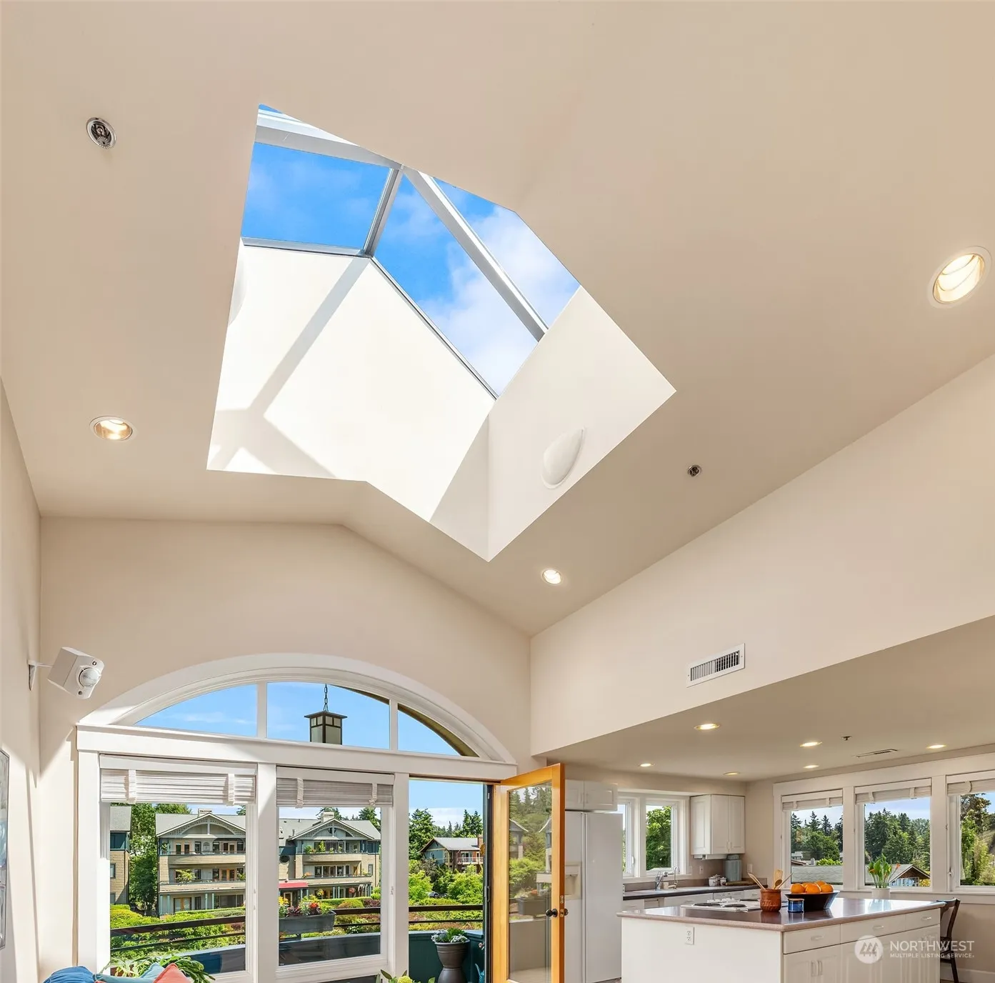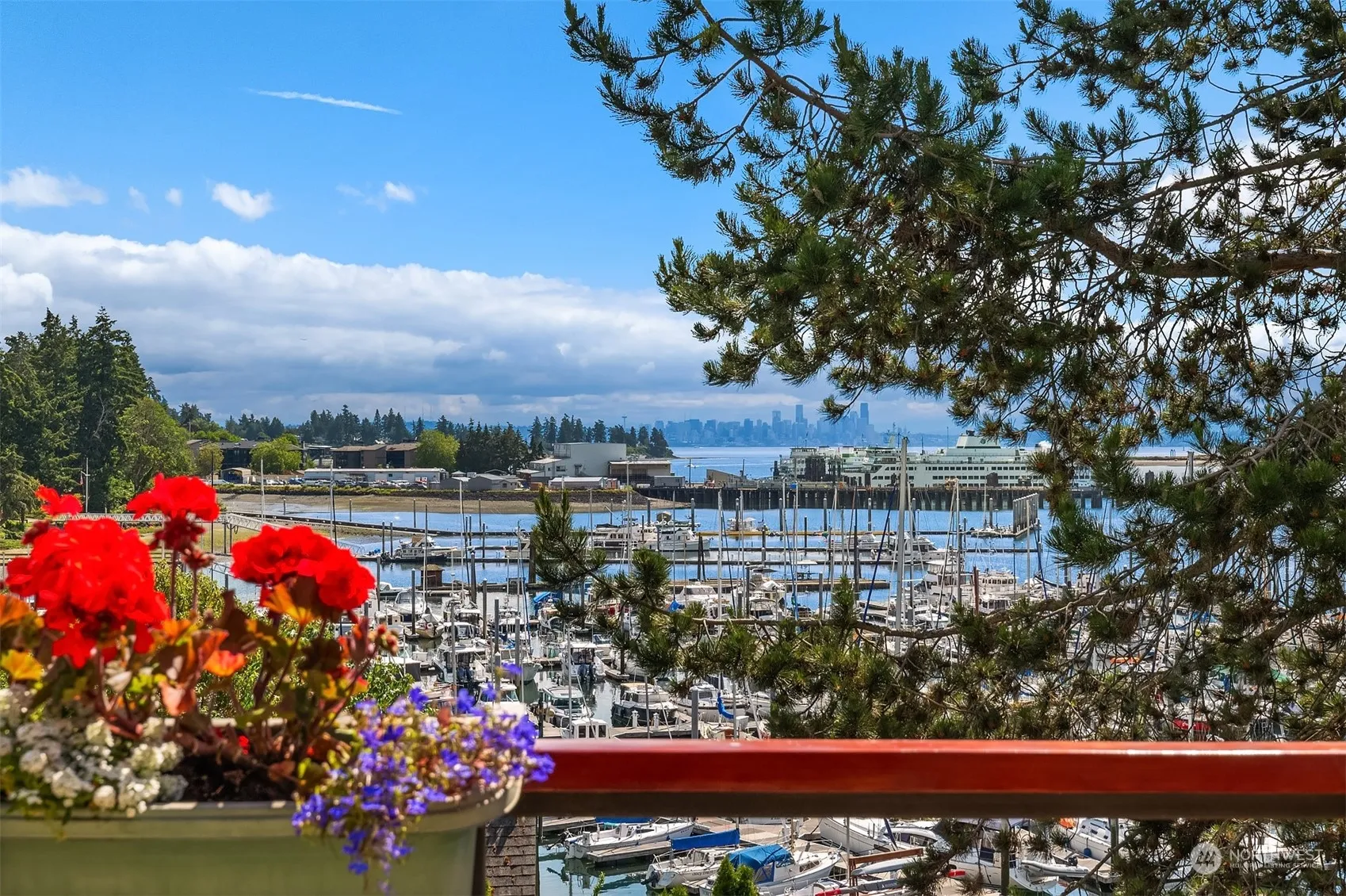 Captivating views take center stage from this one-of-a-kind 3-bedroom penthouse in Marina at Harbourside – a highly desirable waterfront building of 10 luxury homes. An elevator delivers you to your door. Inside, vaulted ceilings & skylights flood the spaces w/light. Dynamic harbor & city views enchant night & day, w/breathtaking sunrises from nearly every room & the expansive deck. The kitchen layout is a chef’s dream, w/ample space to create & entertain. Spacious primary offers walk-in closet & 3/4 bath. Enjoy this remarkable home as is, or update finishes to your taste. 2 secure parking spaces, though you may rarely need a car w/the Waterfront Trail just out your door, leading to town & the ferry. Live your best life in charming Winslow!