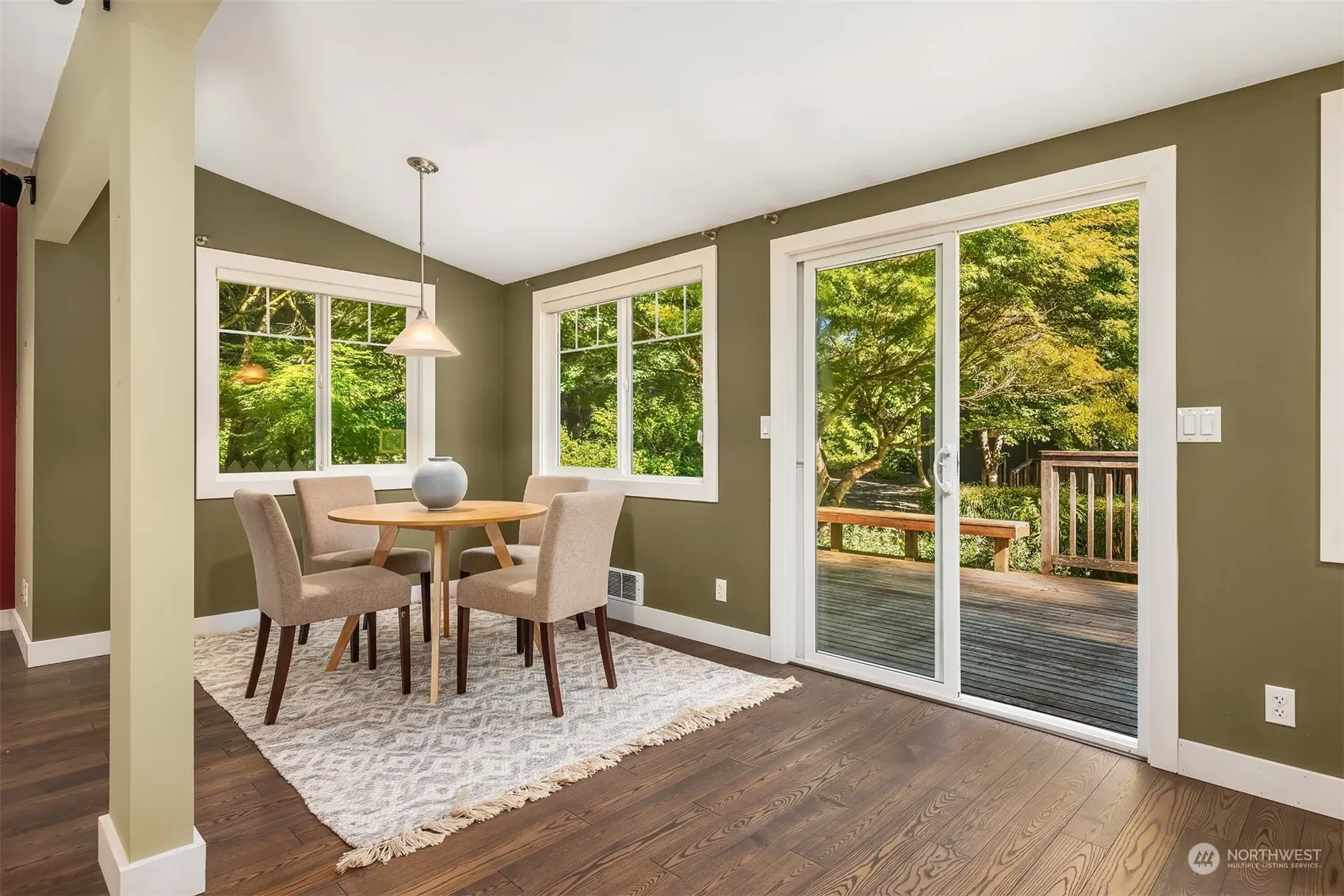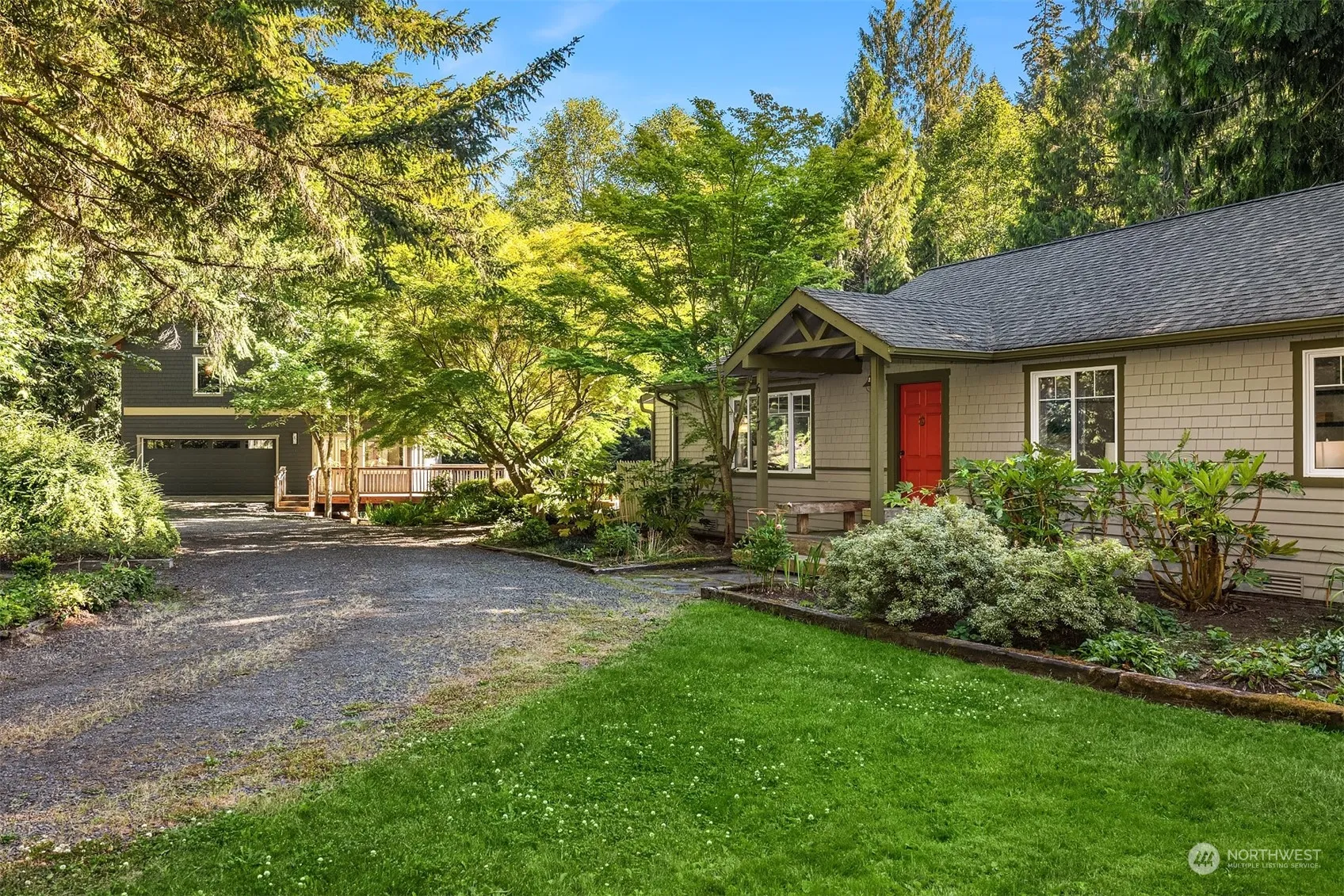Nestled on a peaceful setting on Bainbridge, this 1 story rambler is a rare find. Offering a perfect blend of convenience, comfort & nature, the home plus the detached studio provides an unparalleled living experience. The great room & updated kitchen feature large spaces for art & entertaining. Primary suite includes a walk-in closet + en-suite bath. 2 additional bedrooms w/serene views complete the features of the home. Outside you will find a 2 car detached garage with beautiful main floor studio/office w/ ½ bath. Perfect for remote work, art or exercise, the studio completes the picture as an ideal spot to call home. Situated near trails, transit & the waterfront, this home provides endless opportunities for an ideal island lifestyle.