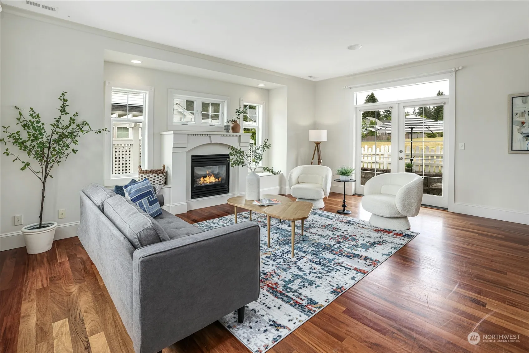 The largest, most versatile floor plan on the Parade Grounds; 3 bedrooms, 2.5 baths with a main floor den. Quality features rarely seen in this price point include a ducted heat pump for efficient heating/cooling, hardwood flooring upstairs and down, tall 9-foot ceilings on the main floor, 5-piece primary bath with stonework, solid wood cabinetry in the kitchen, and a spacious primary bed with vaulted ceilings and a balcony overlooking the grounds. Easy access to trails, across the street from the Fort Ward Hall and the spacious Parade Ground Park is just out your back gate. Short jaunt to Lynwood Center amenities and the award wining Blakely Elementary School. No HOA or dues. Enjoy the sunny south end of Bainbridge Island this summer.