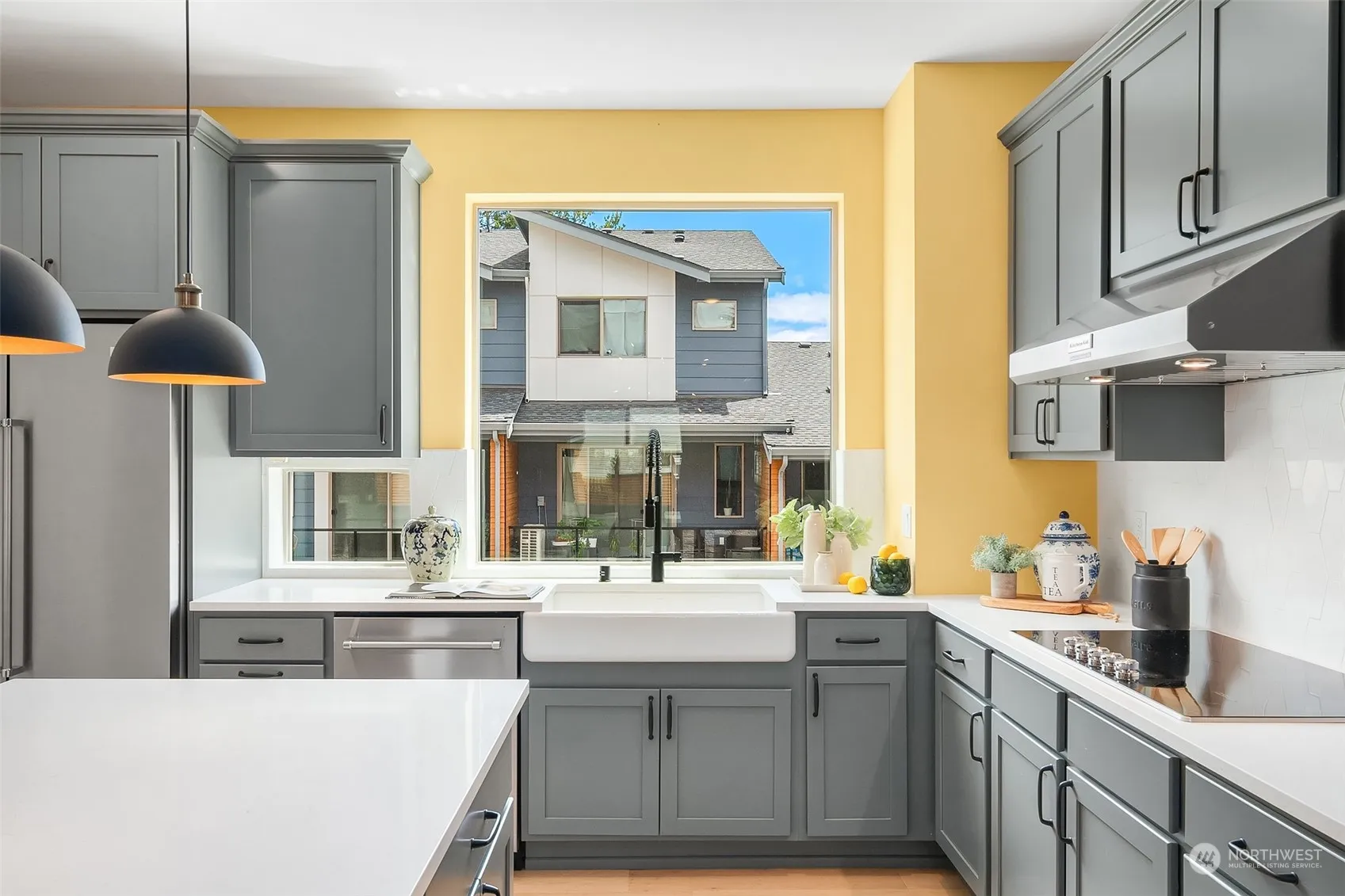 Lovely & friendly Winslow Townhome. This home is truly turnkey, full of natural light w/a gracious open living design. Luxury gourmet kitchen, elegant primary suite w/European tub. Two secondary bedrooms & full bath on upper floor. Entry offers a spacious foyer, flex room w/patio which can be used as a private office space separated from the rest of the home providing a quiet working space w/a 3/4 bathroom. Originally the builder’s model home, this unit is loaded with upgrades! The two stall garage is perfect for storage and home projects-with EV charger! A NW modern design w/abundant amenities, enjoy the community space – bocce ball court, pergola & lush landscape throughout. Minutes to waterfront, parks, trails, shopping and restaurants.