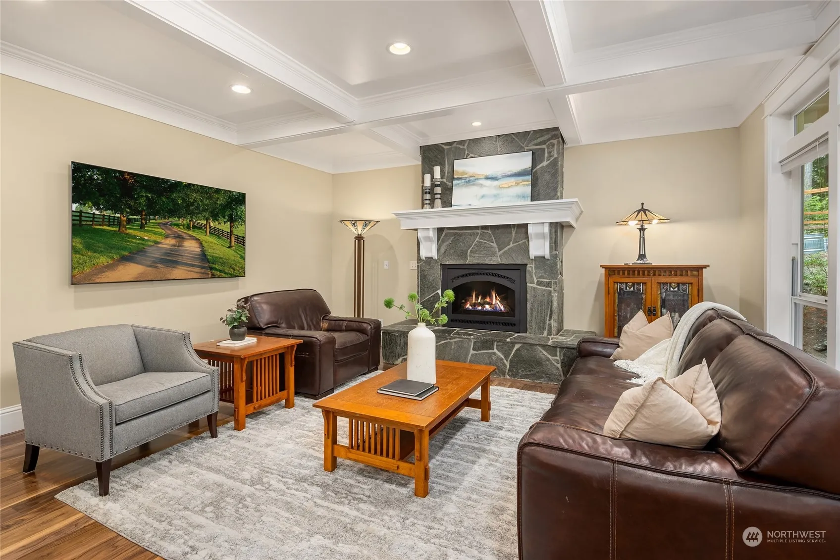 Gorgeous classic home on sunny 2.17 acres offering complete privacy and a lovely territorial outlook. Totally serene, yet walking distance to coffee shops, movie theatre & restaurants, Lytle Beach, and miles of wooded trails to Port Blakely & Fort Ward Parks. Open living area w.box beam ceilings, newly refinished hardwood floors, chef’s kitchen w.newer appliances -5 burner propane cooktop, 2 ovens & warming drawer. 4 BR upstairs, luxurious main bath, as well as gracious primary suite. Main floor office has closet & nearby 3/4 bath for main floor living flexibility. Oversized 3 car garage. Multiple outdoor spaces – level lawn, fenced garden, fenced-in small animal barn, firepit, forest – and don’t forget the sauna! Truly an island oasis!