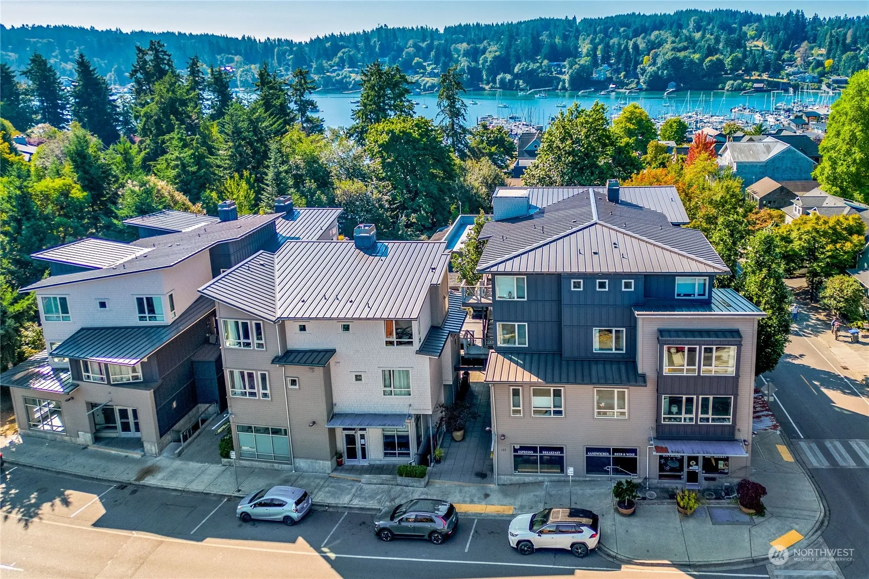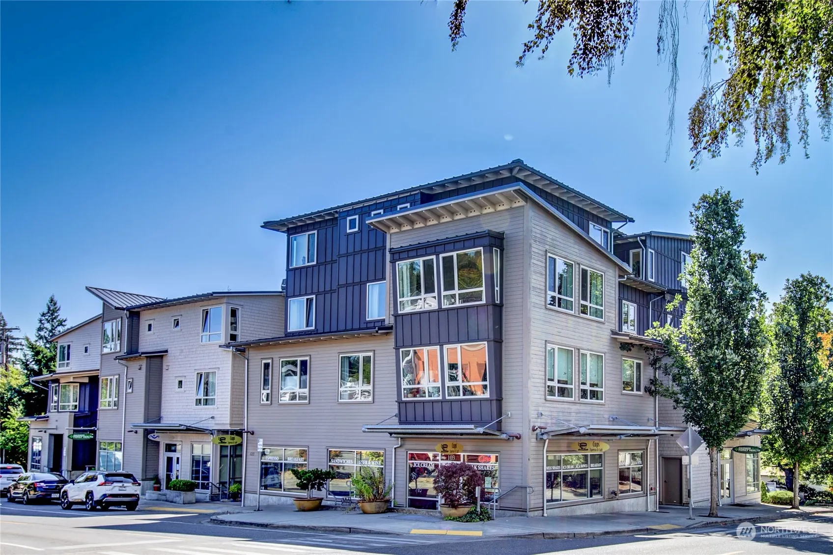 Conveniently located in the heart of Winslow, this modern residence features tall ceilings, large European-made Tilt + Turn windows, Fisher + Paykel refrigerator, Bosch dishwasher, dual-fuel range, in-unit Maytag Neptune W/D, spacious bathroom w/heated floors + soaking tub, ample storage + newer water heater. HOA approved AC. Allowable electric car charging! Easy access to parking space close to elevator + unit storage. Frequent the downstairs cafe before sailing to Seattle, or unwind at sunset along marina trails. Close to shops, restaurants, Farmer’s Market, Town + Country, museum, gym, activities + more! Large communal patio for gatherings + relaxation. Don’t miss the opportunity to own a piece of desirable Downtown Bainbridge Island!