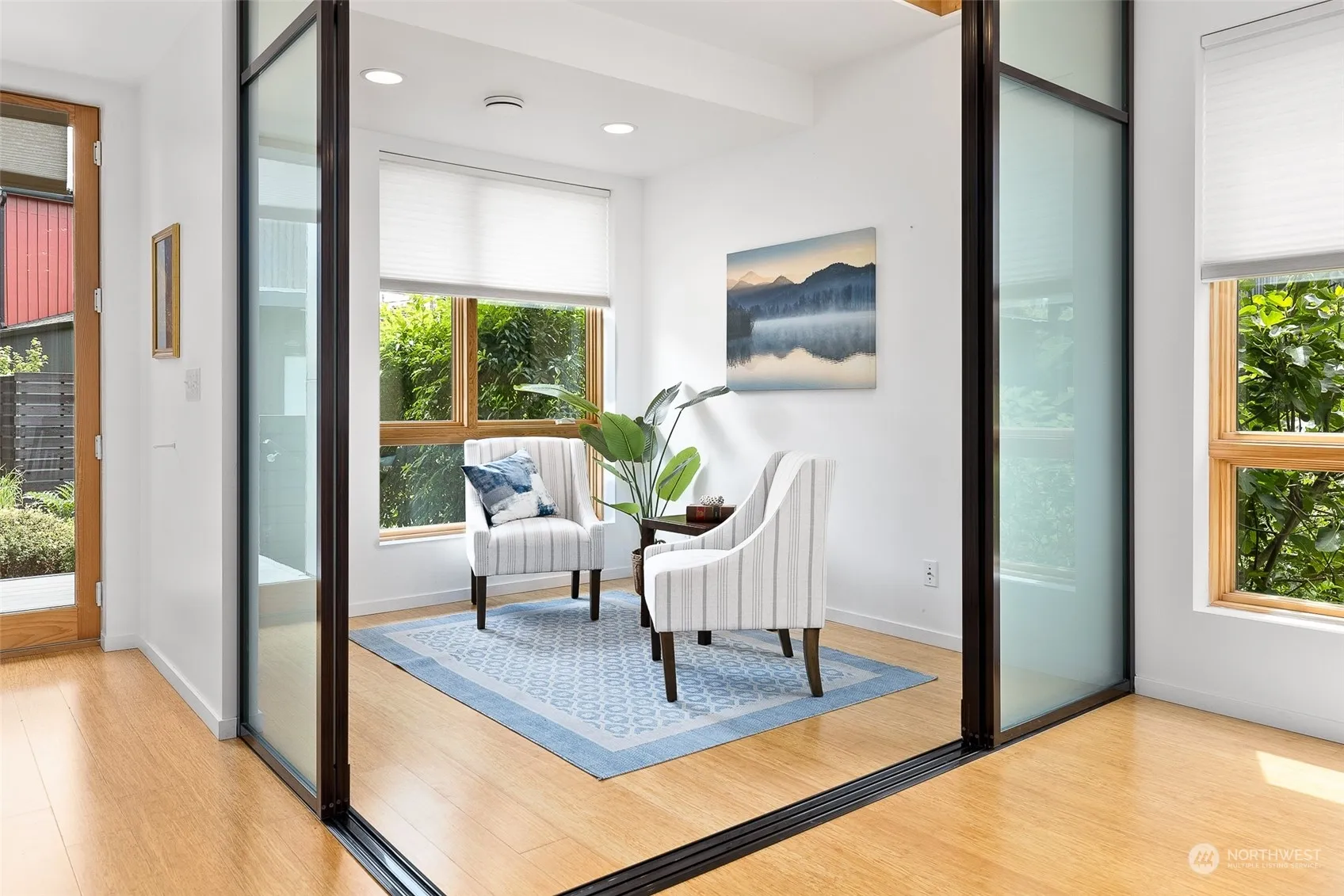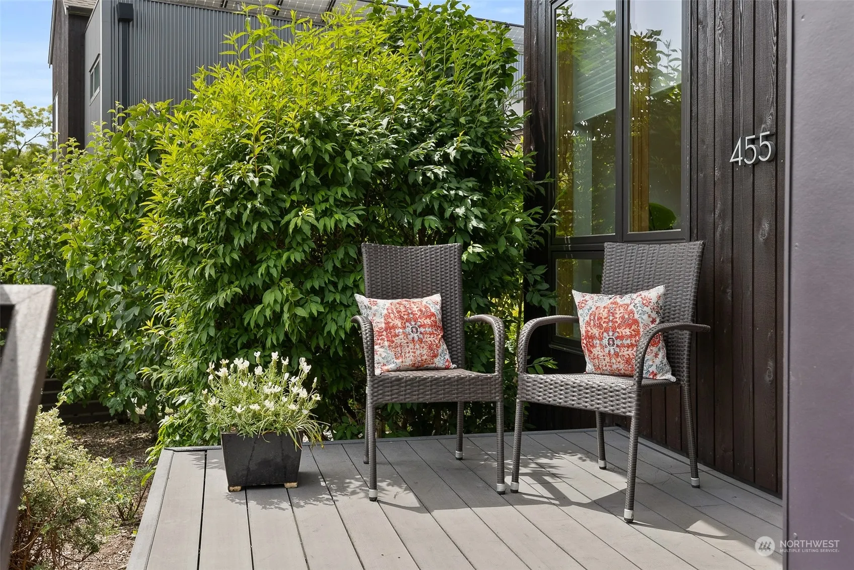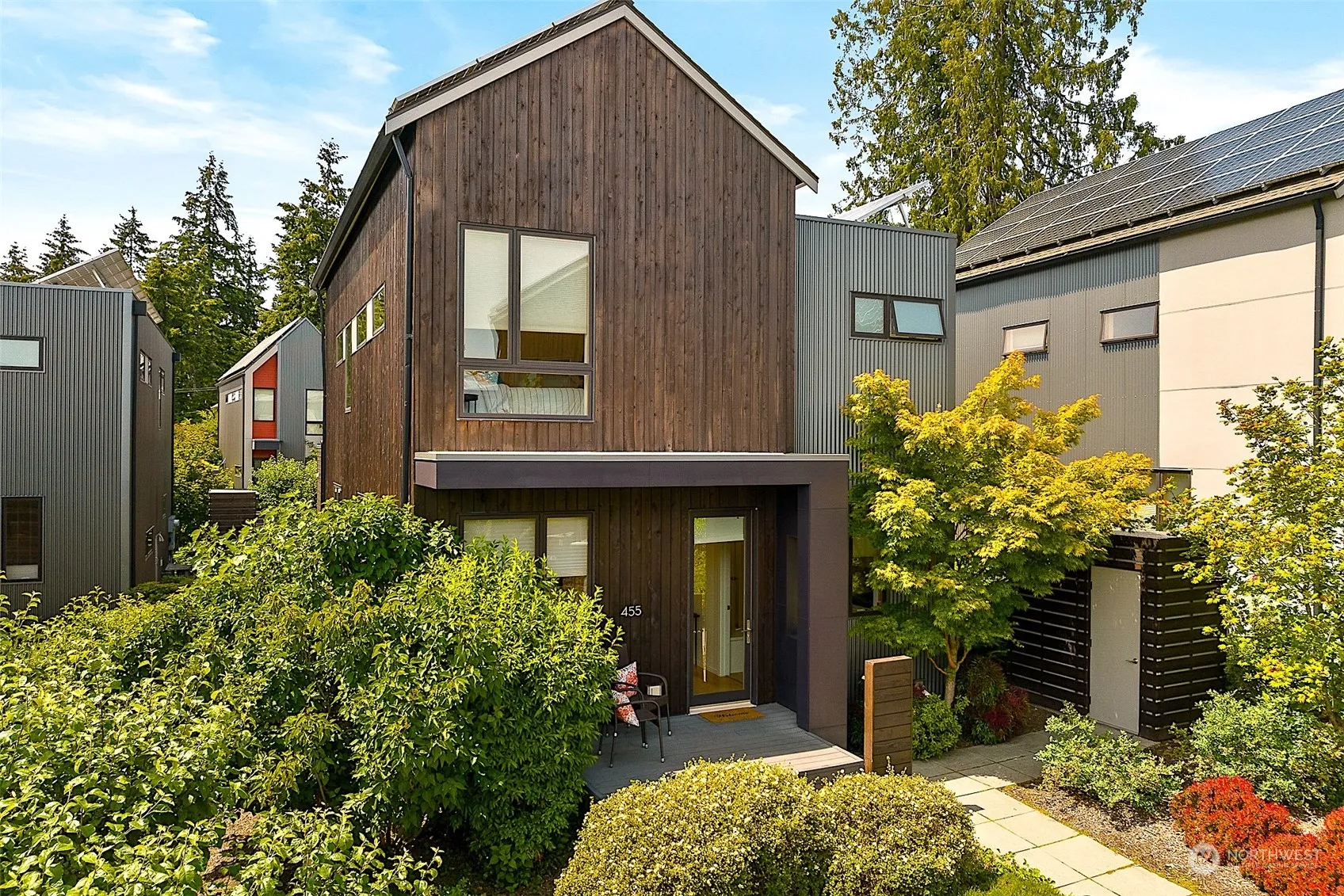 Rare offering at the Grow Community featuring an exceptional standalone home including detached studio with ¾ bath. One of the largest units in Phase I includes a fenced yard and spacious IPE deck connecting the main home to the studio. Main home features 3bedrooms, 2.5 baths + den with glass screen doors for privacy. Studio boasts an additional 200sf, perfect for guests, home office or other creative pursuits. Rated 5-star Built Green with solar panels means your electric bills are under $8/month. Gorgeous landscaping throughout includes fruit trees & raised veggie beds. Don’t miss out on this incredible sustainable retreat in one of the most coveted in-town locations close to Winslow’s best shopping, restaurants & entertainment.