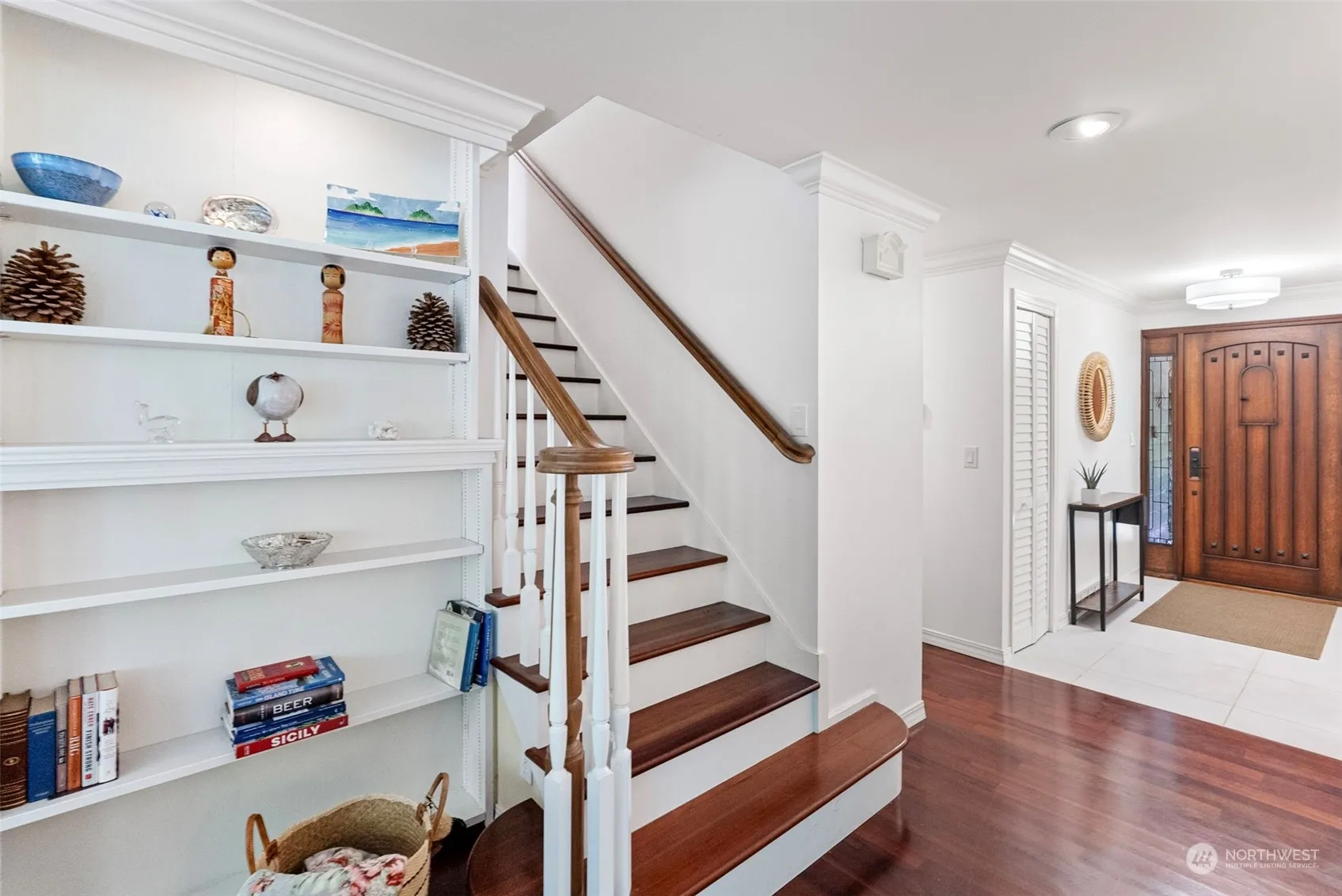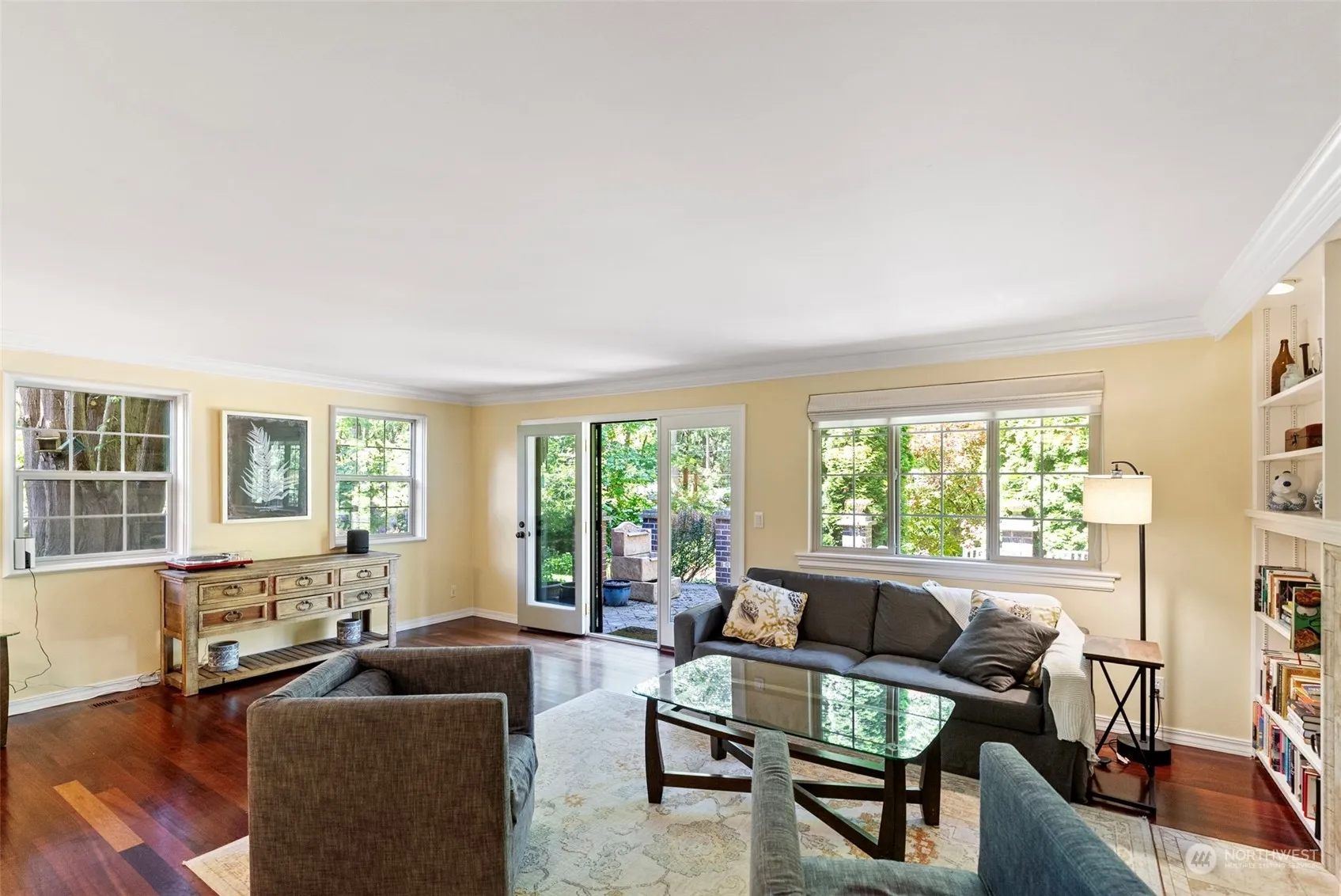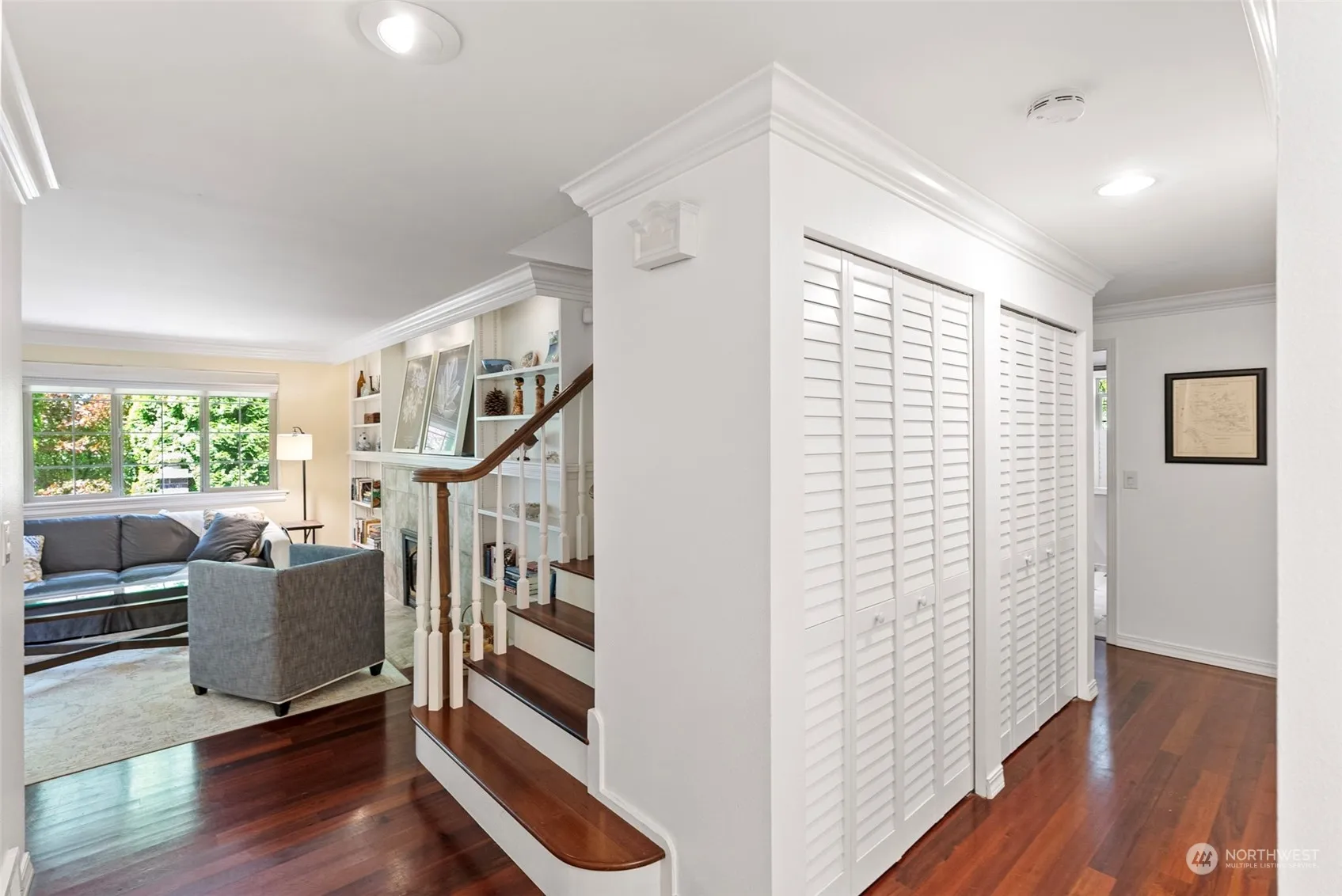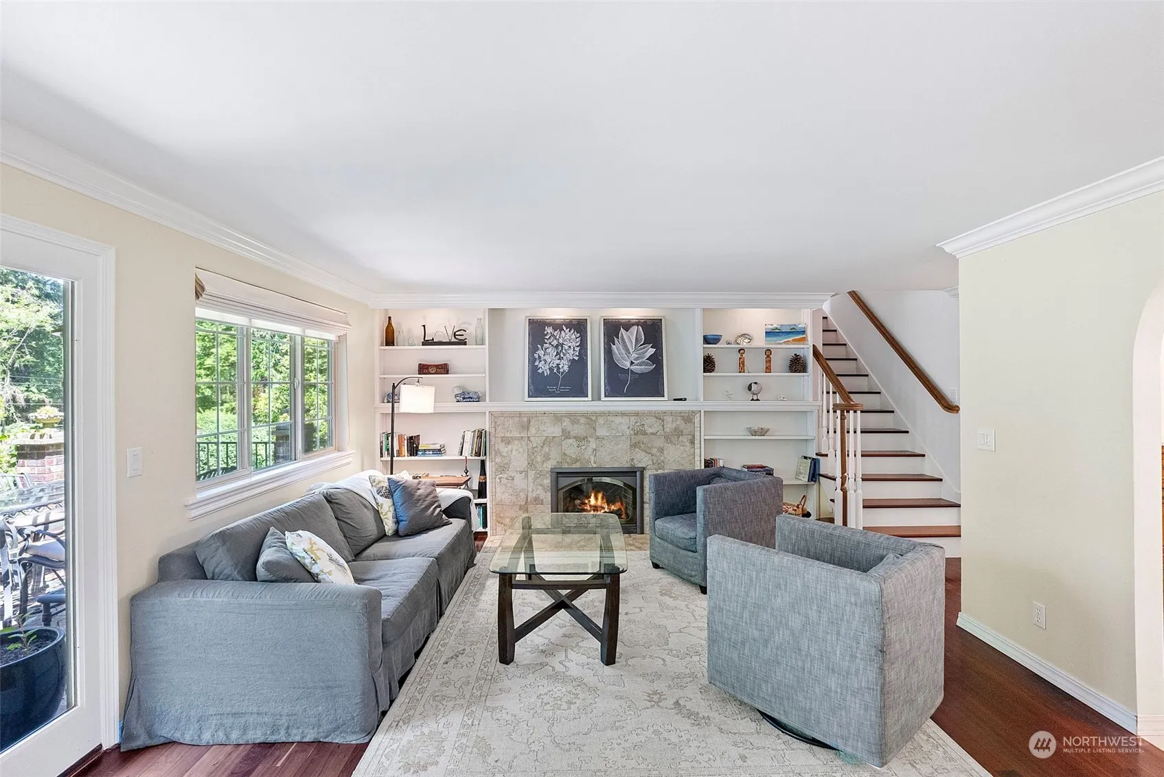 Step into this charming home with a lovely brick and stone patio overlooking gorgeous, private gardens with a European flair. The main floor has a wonderful entertaining flow; including kitchen, dining area and a gracious living room with fireplace and french doors to patio. Additionally, the main floor offers 2 bedrooms, full bathroom and a separate family room for movie night. The upper floor has a spacious primary suite with a remodeled bath and large walk-in shower, and a generous-sized study with built-in storage. Great central location in a quiet neighborhood with easy access to Grand Forest, Battlepoint Park, schools and ferry. Don’t miss the fabulous wine cellar in the garage!