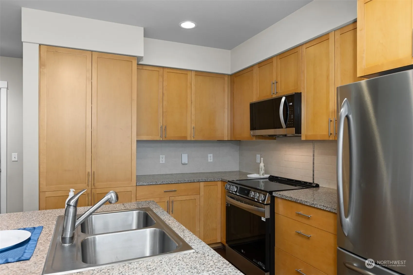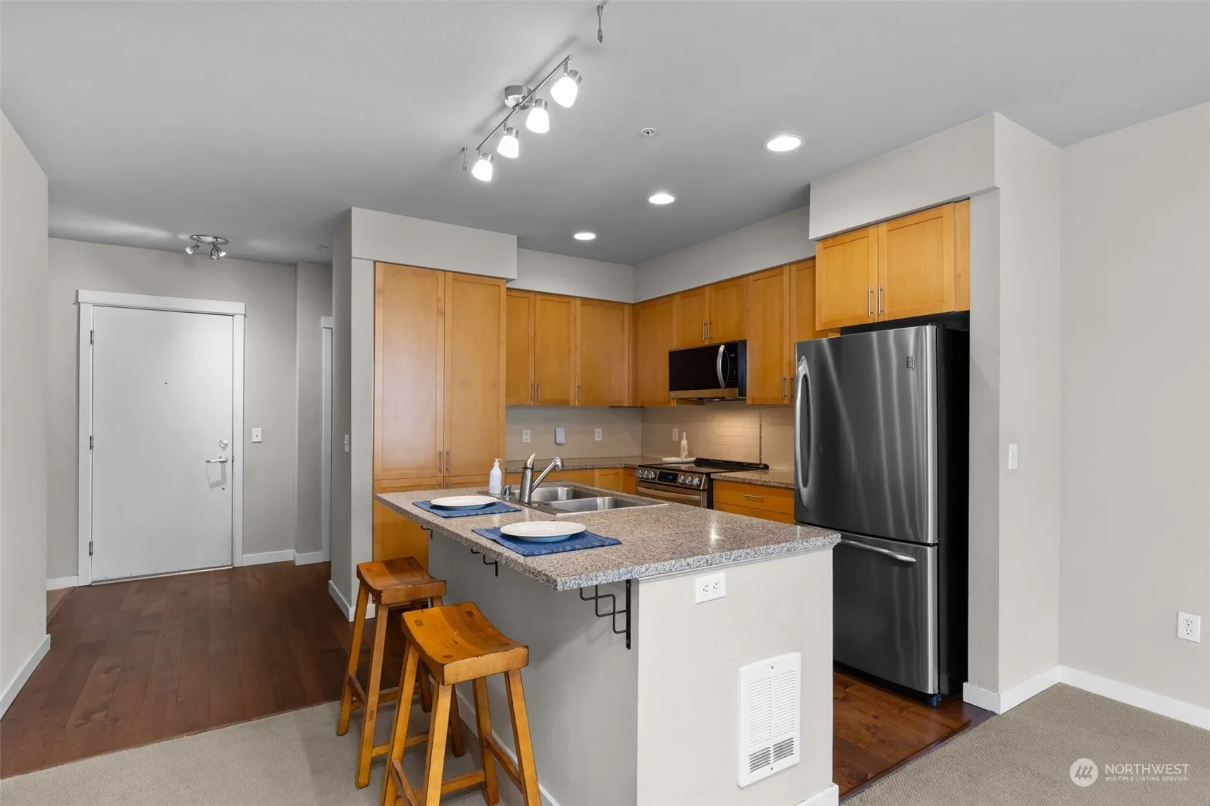 Just one block from the ferry, this beautiful 1 bed, 1.5 bath, 867 sqft unit is conveniently located within walking distance to Winslow’s quaint downtown, offering an array of restaurants, shops, and other wonderful amenities. The kitchen features granite countertops, recently updated appliances, and a modern backsplash, perfect for casual meals at the breakfast bar. An extra alcove provides ideal space for a desk or home office. The unit boasts large picture windows, a private balcony, a walk-in closet, and laundry closet. An elevator provides access to the secured parking garage and storage area. Amenities include an exercise facility, clubhouse, guest suite, gorgeous grounds, and a lobby with computer workstations. Two pets are allowed.