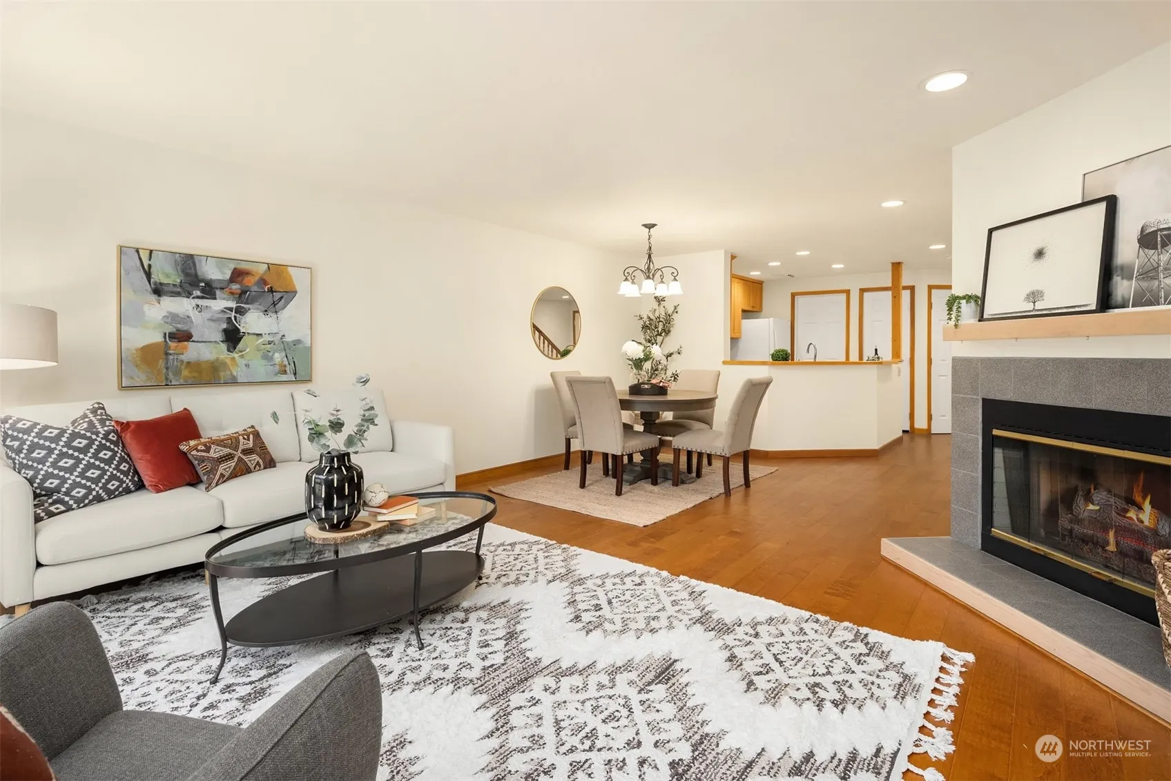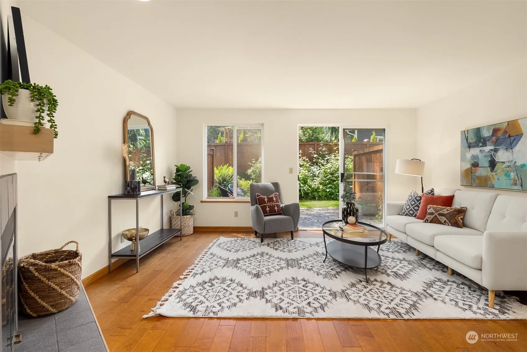 Spacious, bright and quiet condo close to schools and shops, only a half-mile from downtown Bainbridge! Spread over two floors, this condo lives like a house. On the main floor, the great room connects the kitchen, dining, and living areas for easy entertaining. Relax by the wood-burning fireplace or enjoy the sound of the birds on your private patio. The common gardens are maintained by a professional team, included in your dues. For the ultimate in privacy, two generous bedrooms upstairs each have a large closet and dedicated bathroom. The primary bathroom is en suite with a shower and the second bathroom has a tub/shower combo. The secondary bedroom has a perfect desk nook. New carpet and paint throughout and freshly remodeled bathrooms!