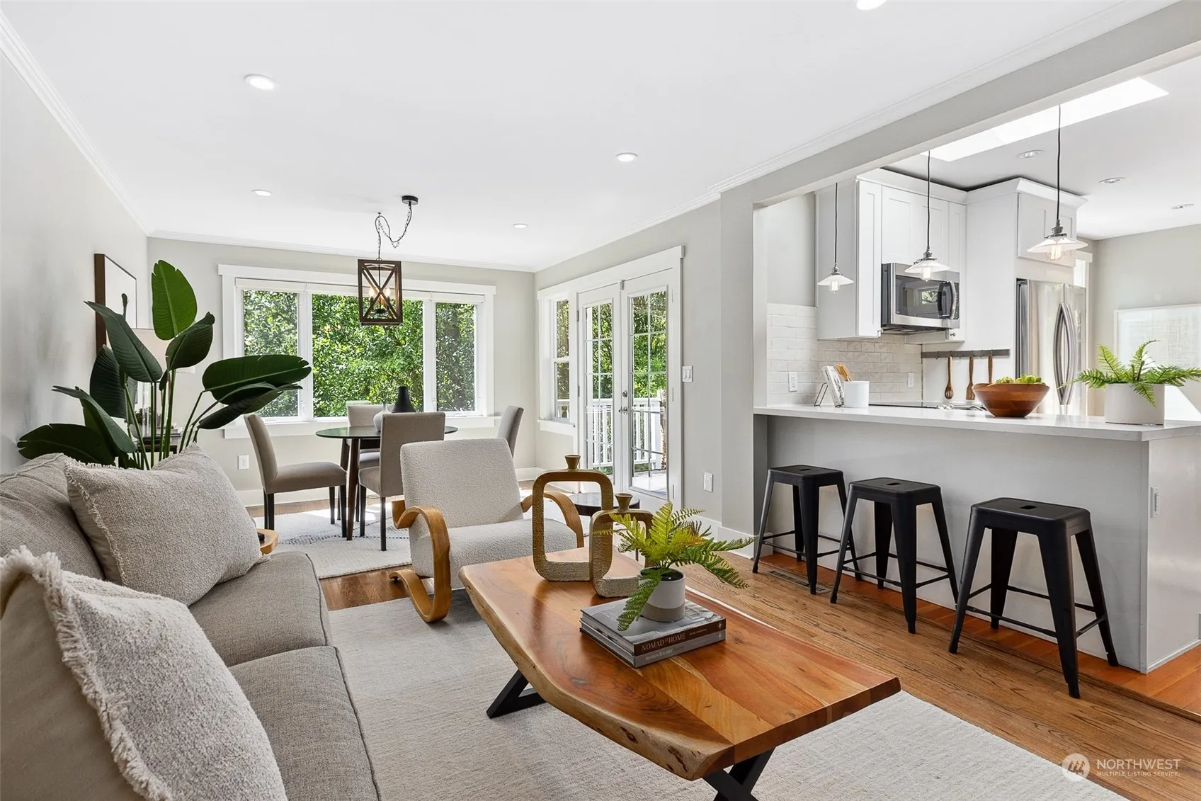 Charming home close to town and waterfront trails. Condo alternative with fenced yard. Primary bedroom on the main level featuring a custom closet and beautiful bath with marble countertops. Tastefully remodeled. Kitchen with quartz countertops and stainless steel appliances with extra space for a planning desk. Crown molding and archways along with French doors to deck and the patio make this home so inviting. The second bedroom and full bath is also on the main. Dining room looks out onto open space, so very private! Tons of extra storage! Bosch stackable washer and dryer. Family room leads out to the spacious back yard. Peek a boo view of the water in the wintertime. Condo budget, but need a yard for play or a pet? Here you go!