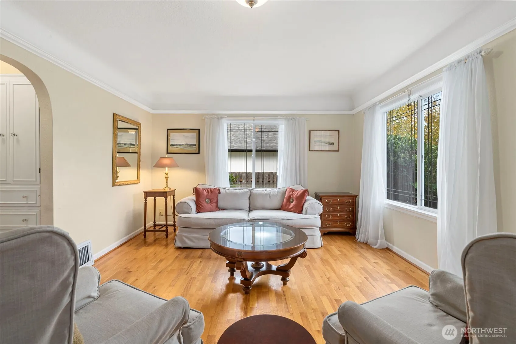 Welcome to this beautifully updated 1940s Craftsman perched on desirable Tumwater Hill. This 3-bedroom, 2-bath home blends timeless character with modern comfort. Inside, sunlit rooms feature hardwood floors, graceful archways, and a thoughtfully designed kitchen with vintage-inspired finishes and a central island ideal for gathering. You will also find storage galore in the semi-finished basement. The landscaped yard offers vibrant curb appeal, while the inviting front porch and purple door add a touch of charm. Enjoy a fenced backyard oasis of greenery, peaceful surroundings and easy access to local amenities, parks, and schools. A perfect blend of vintage warmth and thoughtful updates—ready to welcome you home.