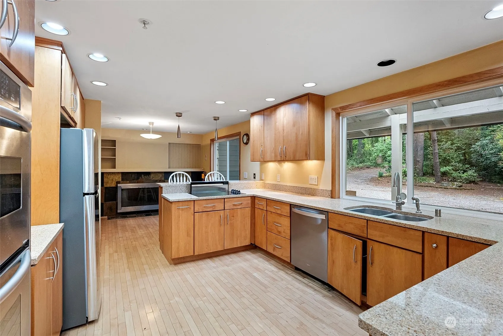 Looking for a great Bainbridge Island location near two public beaches with convenient access to Kitsap Transit, Manzanita Park, and Poulsbo? Then this 5 bed, 3.75 bath home on almost half an acre might be just what you’re looking for! Generous kitchen invites multiple cooks with stainless appliances, solid maple cabinets and Silestone countertops. Complete with eat-in space and cozy propane fireplace. Primary bedroom with en suite bath on main floor, as well as two additional bedrooms. Oversized living room with a wall of windows overlooking perennial gardens and Trex deck. Great bonus space with low maintenance bonus room. Inviting circular drive and natural landscaping. Sold as-is. Some elbow grease will make this gem shine!