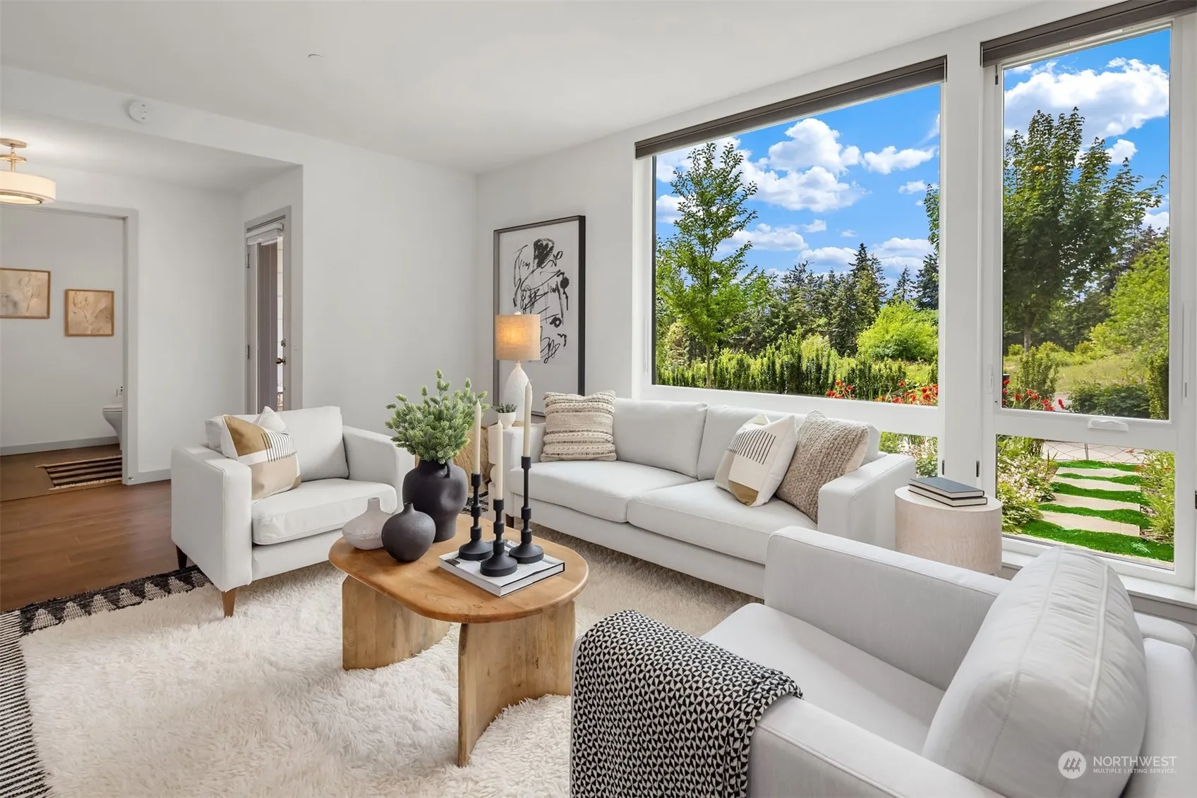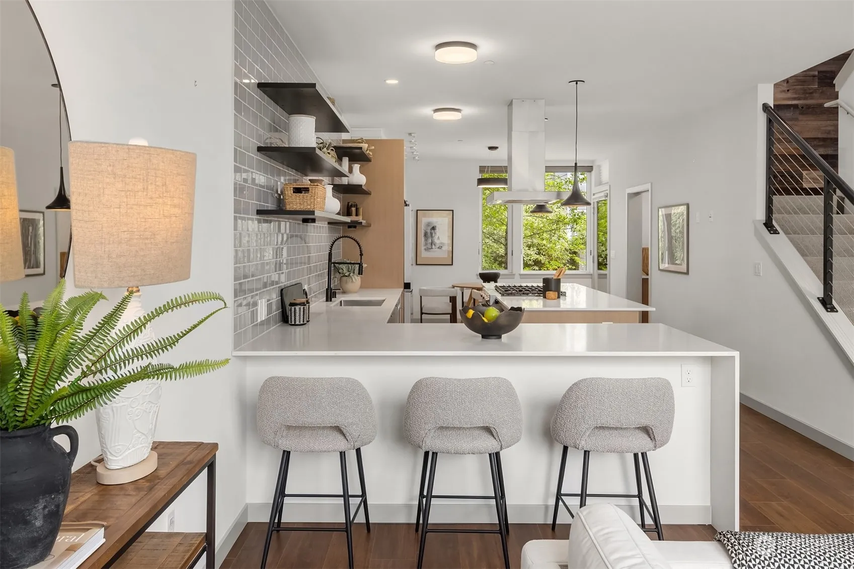 Coveted Ebi Lane townhome features modern Winslow living and unbeatable ferry access. Warm wood tones & large light-filled windows elevate this thoughtfully designed floorplan, flush w/ high-end amenities. Enjoy café vibes in the open tiled kitchen, w/ stainless appliances, sit-up bar, and propane range on the expansive island. Upstairs, discover two suites w/ private bathrooms, a sun-soaked flex space, and private west-facing balcony patio. The attached garage w/ bonus storage rounds out this lock up and go package, perfect for a fulltime Seattle commute or seasonal Bainbridge getaway. Recent California Closets updates include custom library shelving, pantry, walk-in owner’s dressing room, & guest suite Murphy bed for ultimate flexibility.