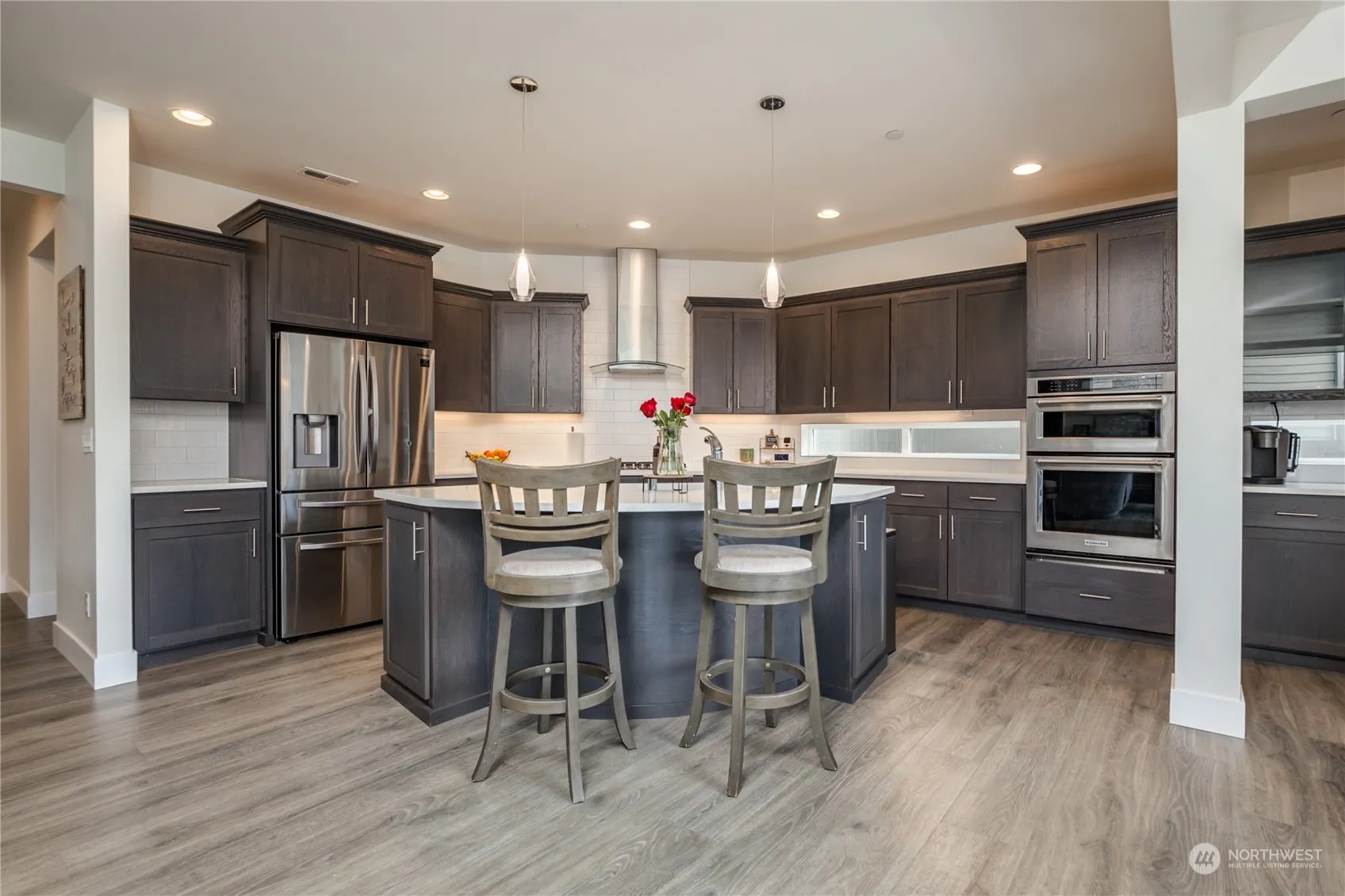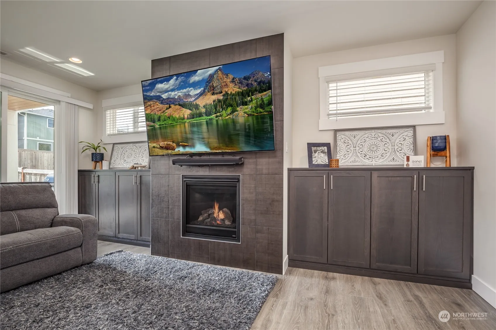 This excellent home has a great floor plan with open concept living area, main floor bedroom & 3/4 bath, plus upstairs bonus room. The huge kitchen boasts rich finishes, quartz counters & elegant tiled backsplash. Walk-in pantry & extensive cabinetry offer plenty of storage. Tall custom cabinets flank the living room’s gas fireplace. Retreat to the spa-like primary suite and enjoy the soaking tub or waterfall shower; dual sinks & closets add to the functionality of this space. Fully-fenced level yard includes a big lawn & firepit for gatherings, or relax on the covered patio. Central A/C & tankless water heater for easy comfort. Short walk to Allen Yorke Park on Lake Tapps for summer playtime, & minutes from abundant Bonney Lake amenities!