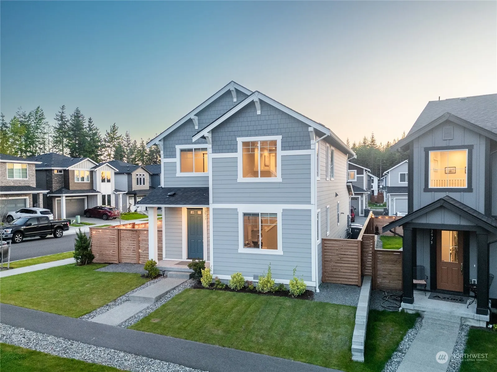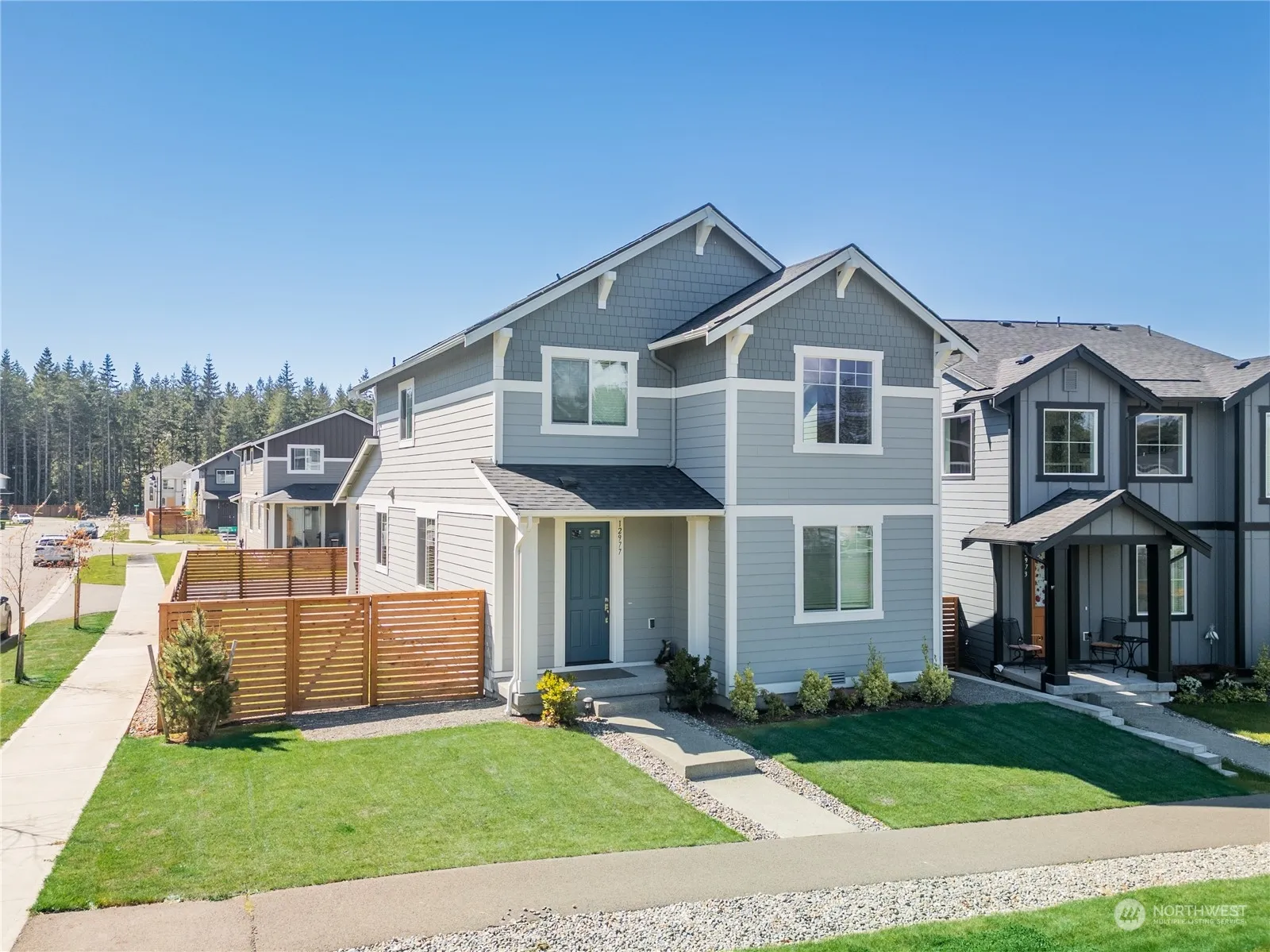 Fantastic Tehaleh home located in the Sumner / Bonney Lake School District. This stunning Azure NW resale greets you with a very inviting front porch & welcomes you into an open entry & beautiful vaulted great room. Spend time chatting around the kitchen peninsula bar or enjoy an intimate dinner in the dining room. Very well thought out 3 bedroom plan allows you to enjoy life with ease to invite guests over to utilize the covered outdoor back patio or enjoy quiet time in your primary bedroom suite with vaulted ceilings. Located on a large corner lot for ideal outdoor relaxation. In addition to all of that, there are over 30+ miles of trails, more than 14 parks and amazing views throughout the Tehaleh neighborhood.