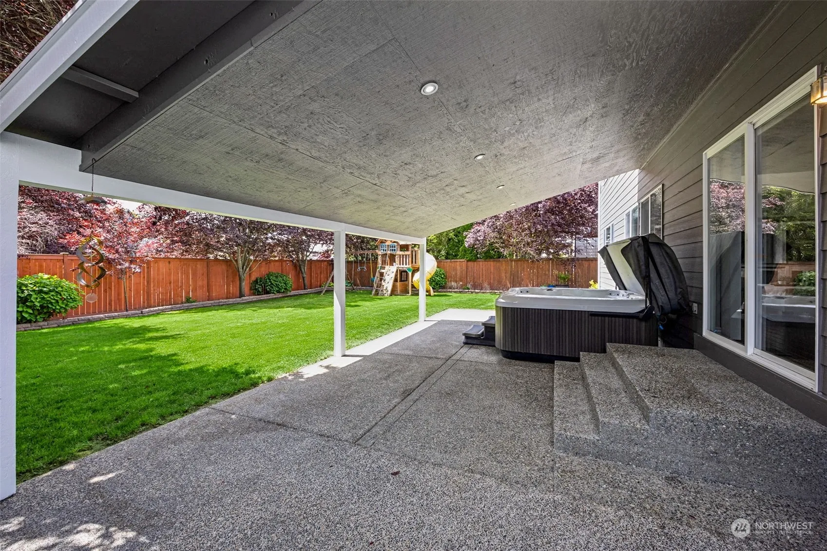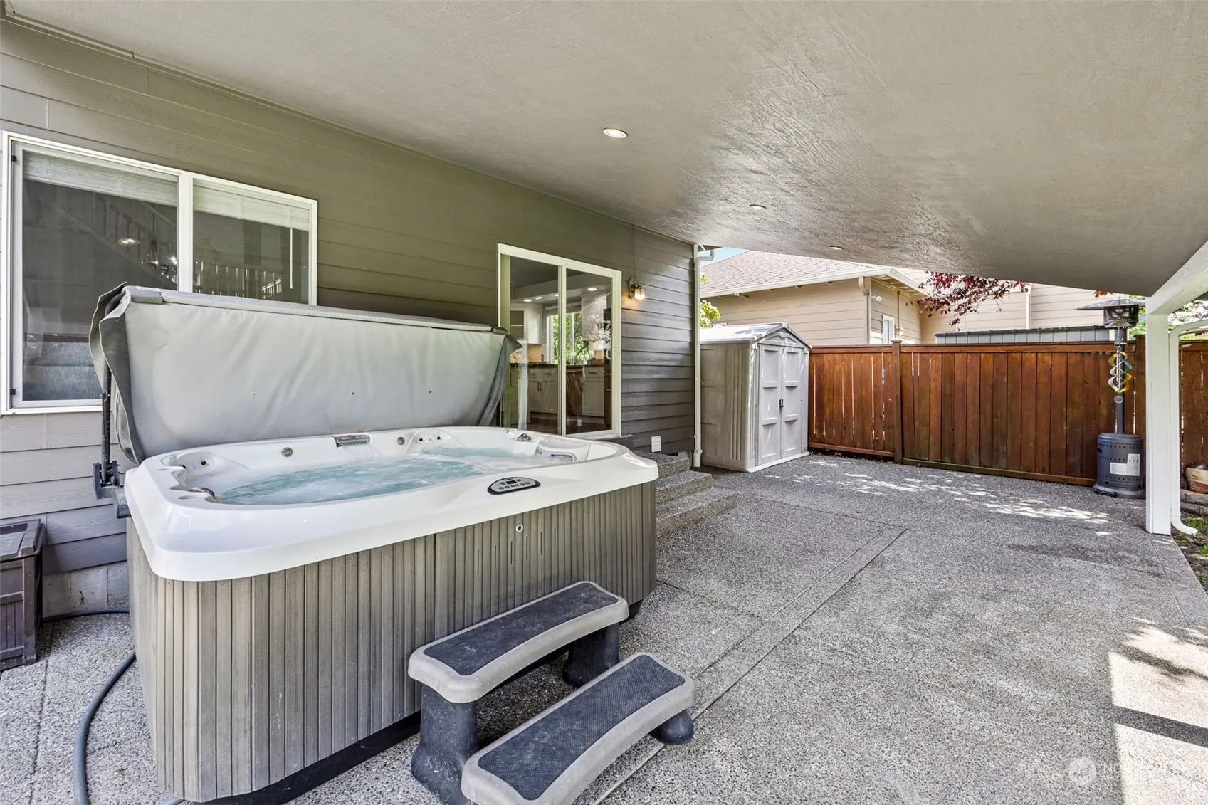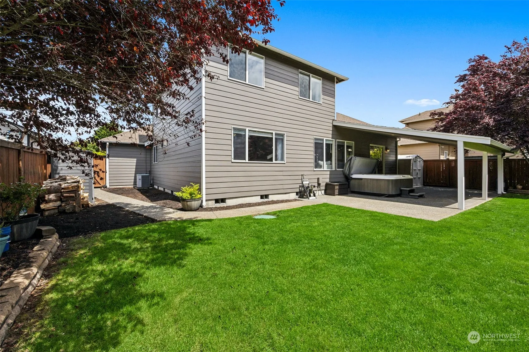 Move-in ready home awaits you in the desirable community of Sky Island, in Bonney Lake. Home features a large open floor plan w/3 different living spaces (Living room, Family room & loft at the top of a beautiful staircase). Master on main w/5 pc bath & a large laundry room. Beautiful hardwood flooring on main along w/gas fireplace. No details have been missed in the remodeled kitchen, w/shaker cabinets & granite counters. There are 3 bdrms & a loft upstairs w/newer carpeting, along with a full bath. Relax out in the hot tub/sauna, under a covered patio w/lighting, or inside w/AC on those hot summer days. Fully fenced & landscaped backyard w/sprinklers. Home has been meticulously maintained. Freshly painted exterior w/a nice 3 car garage