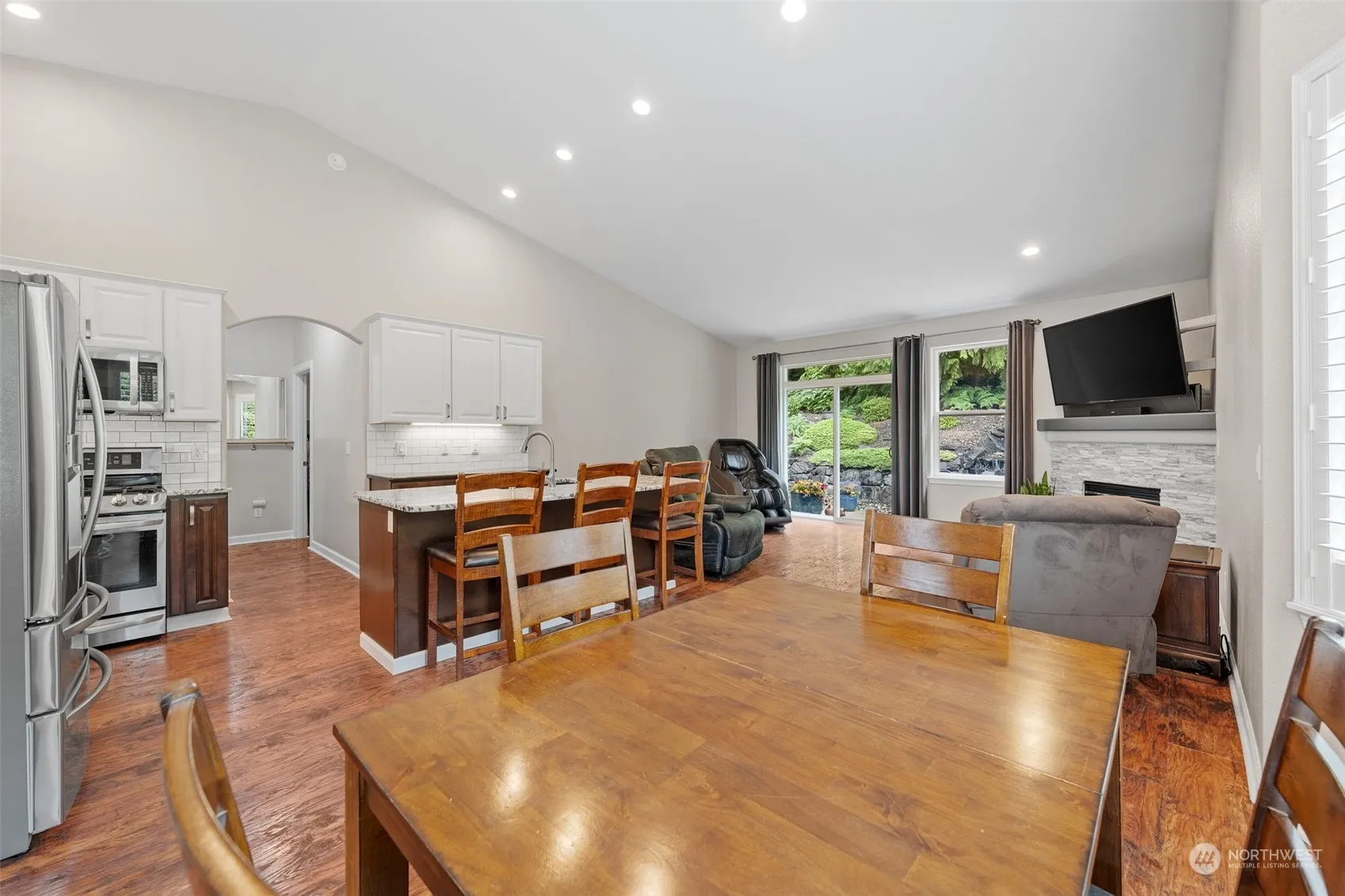 Nestled in a peaceful neighborhood, this beautifully maintained 1-level home offers the perfect blend of comfort & elegance. Updates throughout features a gorgeous kitchen*stainless steel appliances*gas stove*granite counters*tile backsplash & plenty of cabinet space. Vaulted ceilings, gas fireplace & shutters on windows. Primary ensuite w/ walk-in closet, granite counter, double sinks & spacious, stunning shower. Backyard boasts a stunning waterfall, greenbelt & oversized patio that adds tranquility in your own private sanctuary. Sprinkler system. 3-Car garage allows for add’l parking & plenty of storage. Located in a culdesac w/ a community park, mountain view & walking trails. Close to shopping, schools, medical & easy access to freeway.