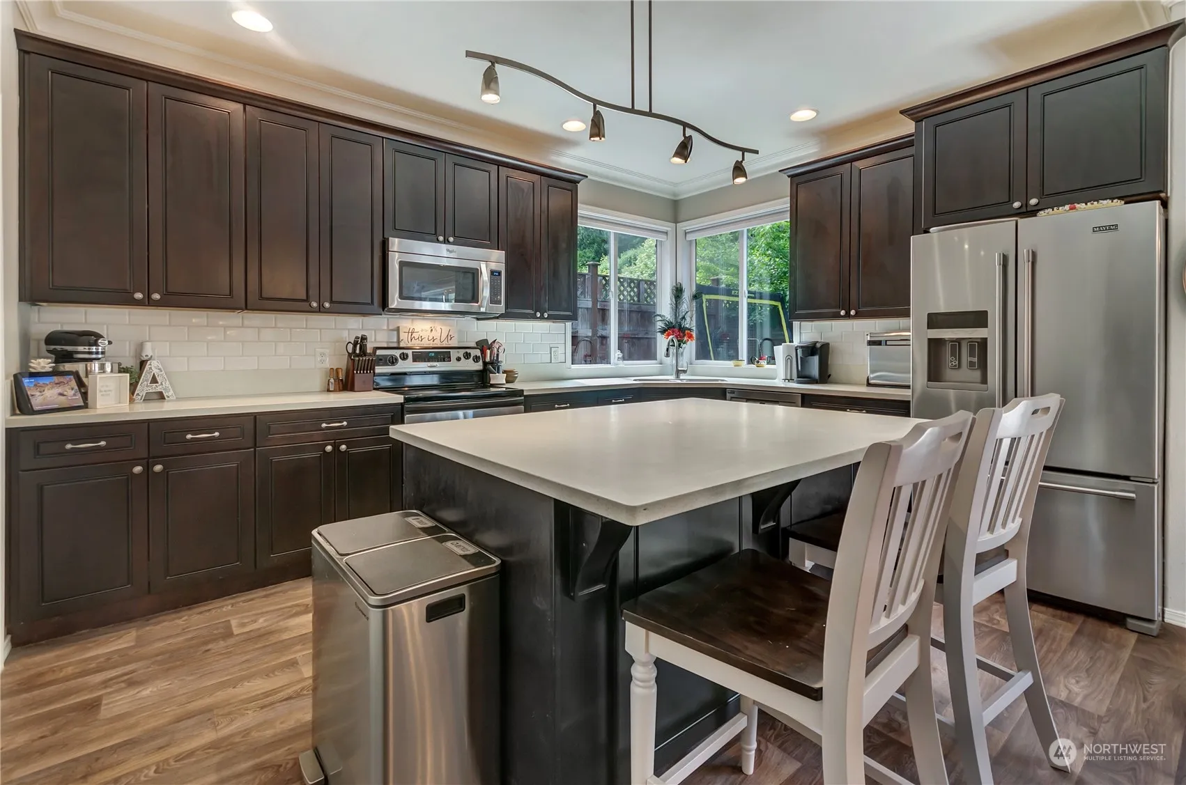 Beautifully remodeled 4 bdrm home in sought-after Willow Brook backs to greenbelt for ultimate privacy. Partial Mt Rainer view. Nearly 2000 sqft of living space. A/C, sprinklers & many upgrades. Great room concept w/vaulted ceilings, expansive flooring. Beautifully updated kitchen w/ SS appliances, quartz countertops & island bar, tons of cabinet space. Large primary suite w/walk-in closet, luxe 5-pc bath. 1 bdrm on main, currently used as an office. Laundry/utility rm w/cabinetry is conveniently located off kitchen. Large private backyard, oversized patios featuring a gazebo, sprinkler system & mature landscaping create a resort-like retreat. Oversized 2-car gar & much more. Near shopping, restaurants & 410. $7K buyer bonus at closing.