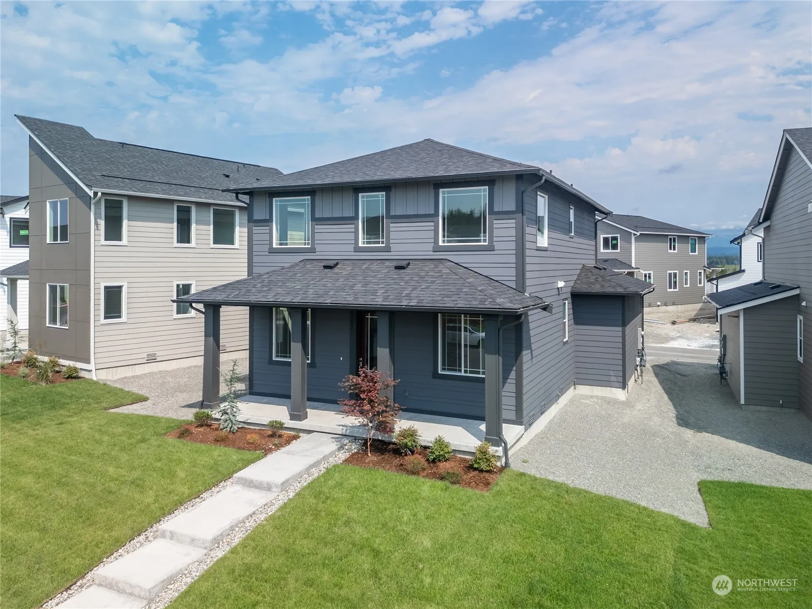 Ask about low interest rate special financing! Completed Home – Move In Ready! The Ashford floor plan greets you with a very inviting large front porch & welcomes you into a open entry & beautiful vaulted great room. Spend time chatting around the kitchen peninsula bar or enjoy an intimate dinner in the dining room. Very well thought out 3 bedroom plus Bonus/Loft plan allows you to enjoy life with ease to invite guests over to utilize the covered outdoor back patio or enjoy quiet time in your primary bedroom suite with vaulted ceilings. Over $35,000 of upgraded options included! If you are working with a licensed broker, please register your broker on your first visit to the community per our site registration policy. View of Mt. Rainier!