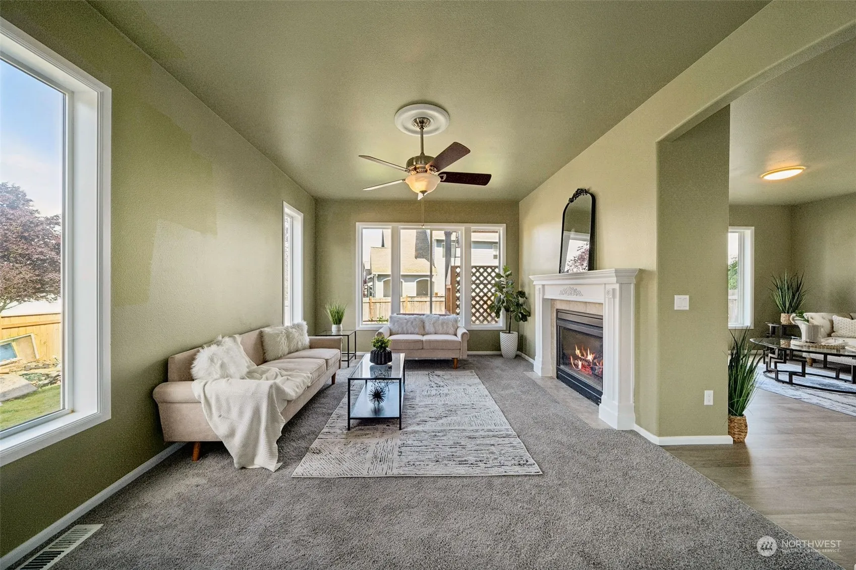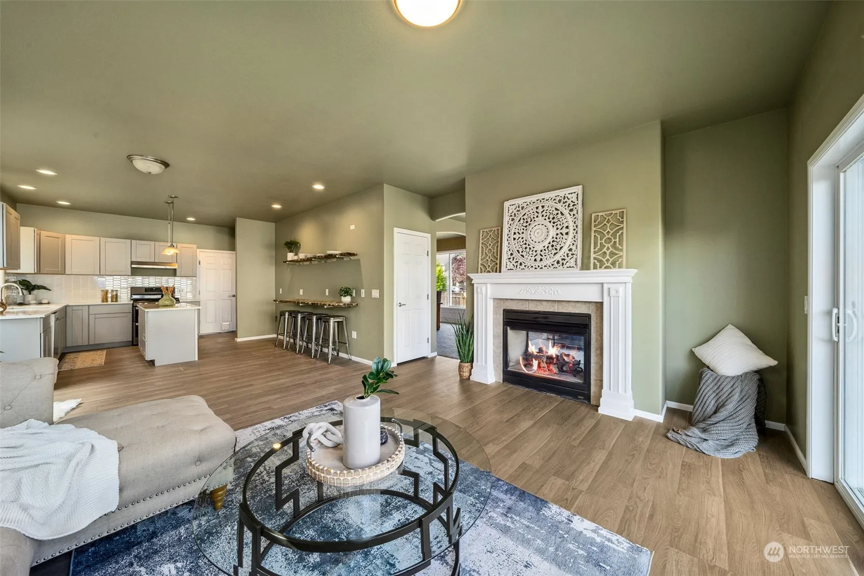 Move-in ready! Just remodeled Sky Island 4BR 2.5BA home will sweep you off your feet! A true entertainer’s house. Vaulted ceilings and inviting layout. Enjoy gorgeous sunsets and view of the Puyallup Valley from the private deck off your spacious primary suite with walk-in closet. Add’l three bedrooms, bathroom, and laundry upstairs. Freshly painted, with new cupboards and flooring throughout. Quartz countertops in kitchen and baths. SS appliances: Bosch dishwasher, gas stove, microwave. Energy-efficient smart thermostat and solar panels. Plus two EV chargers in garage! Furnace recently maintained and wired for A/C. Large, fully fenced corner lot with garden shed and vegetable garden.