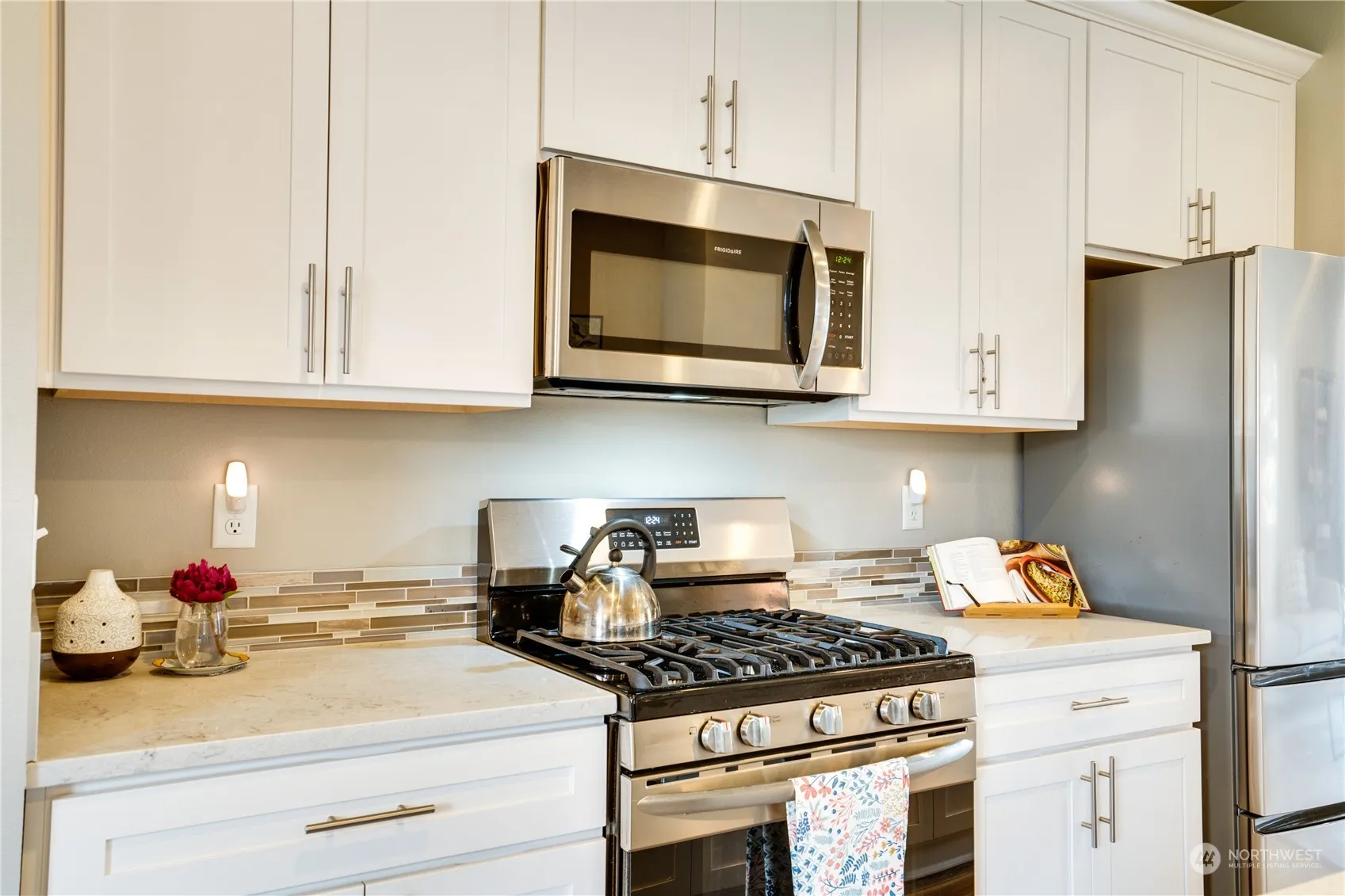 This stylish, upgraded cottage home is virtually maintenance-free and perfect to enter the lifestyle of Tehaleh. Step outside to curated patio gardens, where flagstone paths & lavender scents create an ideal spot for summer relaxation & entertaining. An open floor plan features an extended quartz island, the perfect centerpiece for gatherings. Natural light floods through extra windows, highlighting extensive millwork to give the home a bright, polished feel. Bedrooms, laundry & garage, are thoughtfully placed downstairs providing a quiet, cool retreat. Beautifully landscaped front yards and adjacent steps offer aesthetic appeal and a welcoming sense of arrival. With miles of trails, parks, & amenities, this move-in-ready home is a gem.