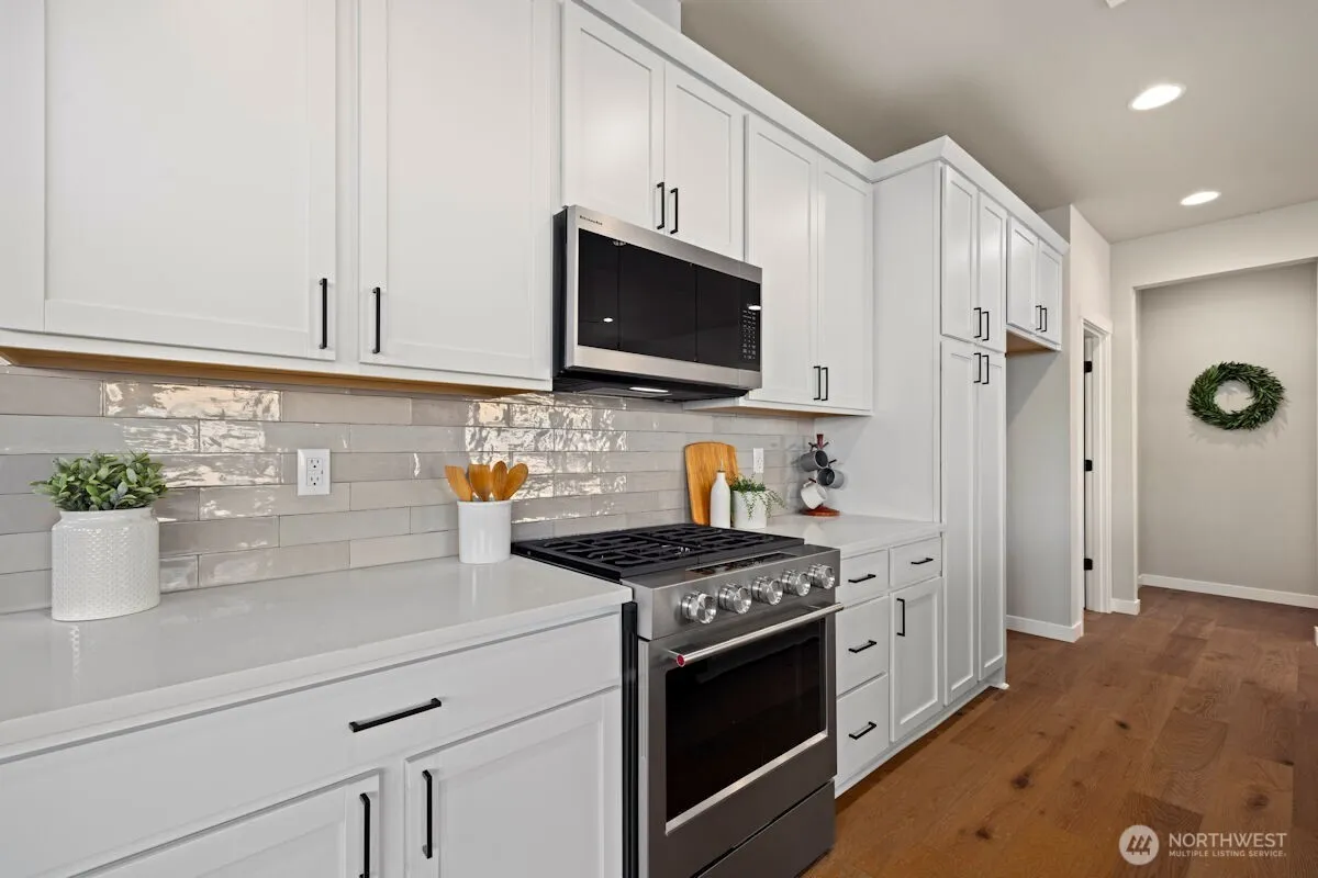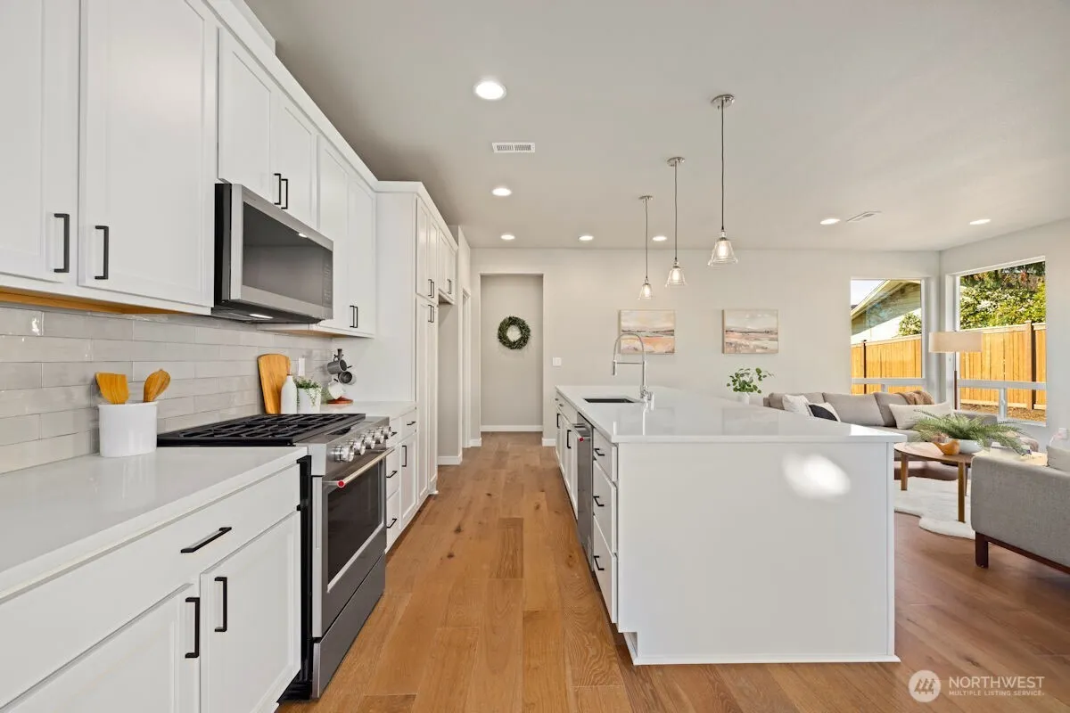 Noble Ridge is an exquisite small view community of just 14 homes that sits high above the bluff offering spectacular views of the Olympic Mountains and the Puget sound with trail access on a dead end cul-de-sac. The RAINIER on lot 1 is a thoughtfully designed 2779 sqft home, with a chef’s dream kitchen offering an 8′ island with white soft closing cabinets and gorgeous 3cm quartz countertops. The main level offers an inviting great room, office/guest bedroom, and walk-in pantry. Upstairs you’ll find the relaxing owner’s suite complete with a luxurious 5-piece bath, an additional 3 bedrooms, and a versatile loft. This corner lot home has added picture windows to take in the views. It is absolutely gorgeous and move in ready!