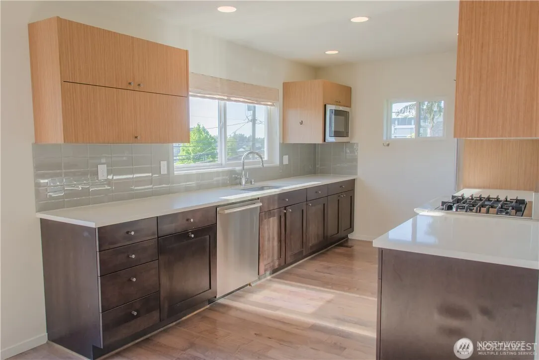 Available 5/1/26. Charming home (duplex main level) in desirable West Seattle. Mountain/Sound views, close to shopping, bus lines and downtown Seattle/Junction. This remodeled, home has 2 bedroom, 1 bath with hardwood floors, designer tile, quarts counters, SS appliances, w/d, deck off the kitchen, fenced front yard for unit A. 1 street parking in back alley (garage is for lower unit only) 1 dog/ 35/40lb/cats/short-haired only, additional 25% pet deposit, Landscaping included. Renters insurance required. (w/s/g are shared with lower unit; 2/3. Back deck/hottub for Unit B only)