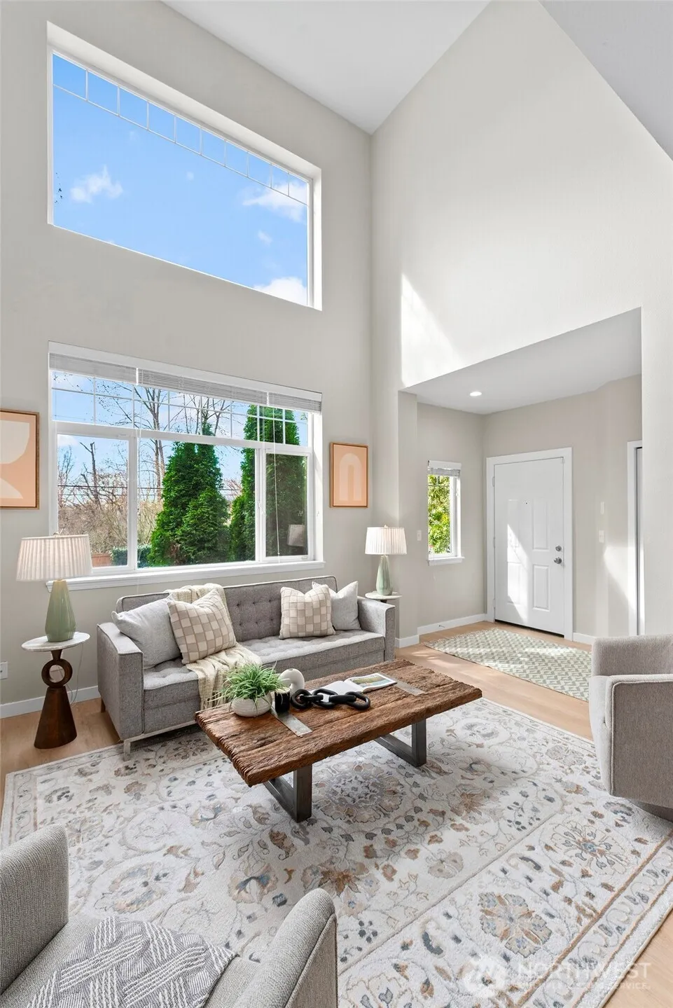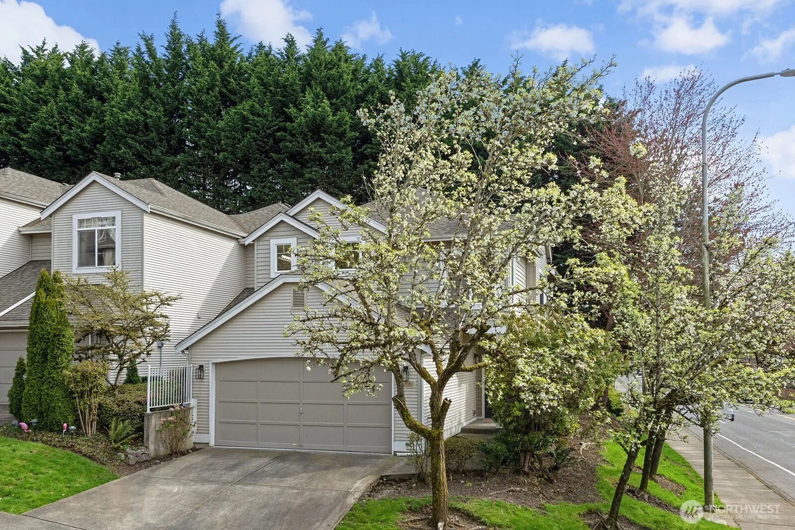 Rare end-unit townhouse filled with light, space, and flexibility. At 1,660 sq ft, this 2-bedroom, 2.25-bath home in Summit Park offers more room than you’d expect and more versatility than most. Wake up to natural light pouring through floor-to-ceiling windows and unwind in a home designed for comfort and function. Soaring cathedral ceilings, a cozy fireplace, and two separate living areas set the tone, while a lofted flex space overlooking the main level makes the perfect home office, bonus room, or additional lounge. A convenient half bath on the main floor keeps guests comfortable. The primary suite comfortably fits a king-size bed and features a spacious closet, dual-sink ensuite, and room-darkening features for restful nights. Parking is a standout with a 2-car garage and two additional driveway spaces. A dual washer and dryer setup adds everyday convenience. Recent updates include a new water heater, refrigerator, carpet, glass stovetop, refreshed closets, and new flooring in the dining and living areas. Move-in and relax in desirable Summit Park.