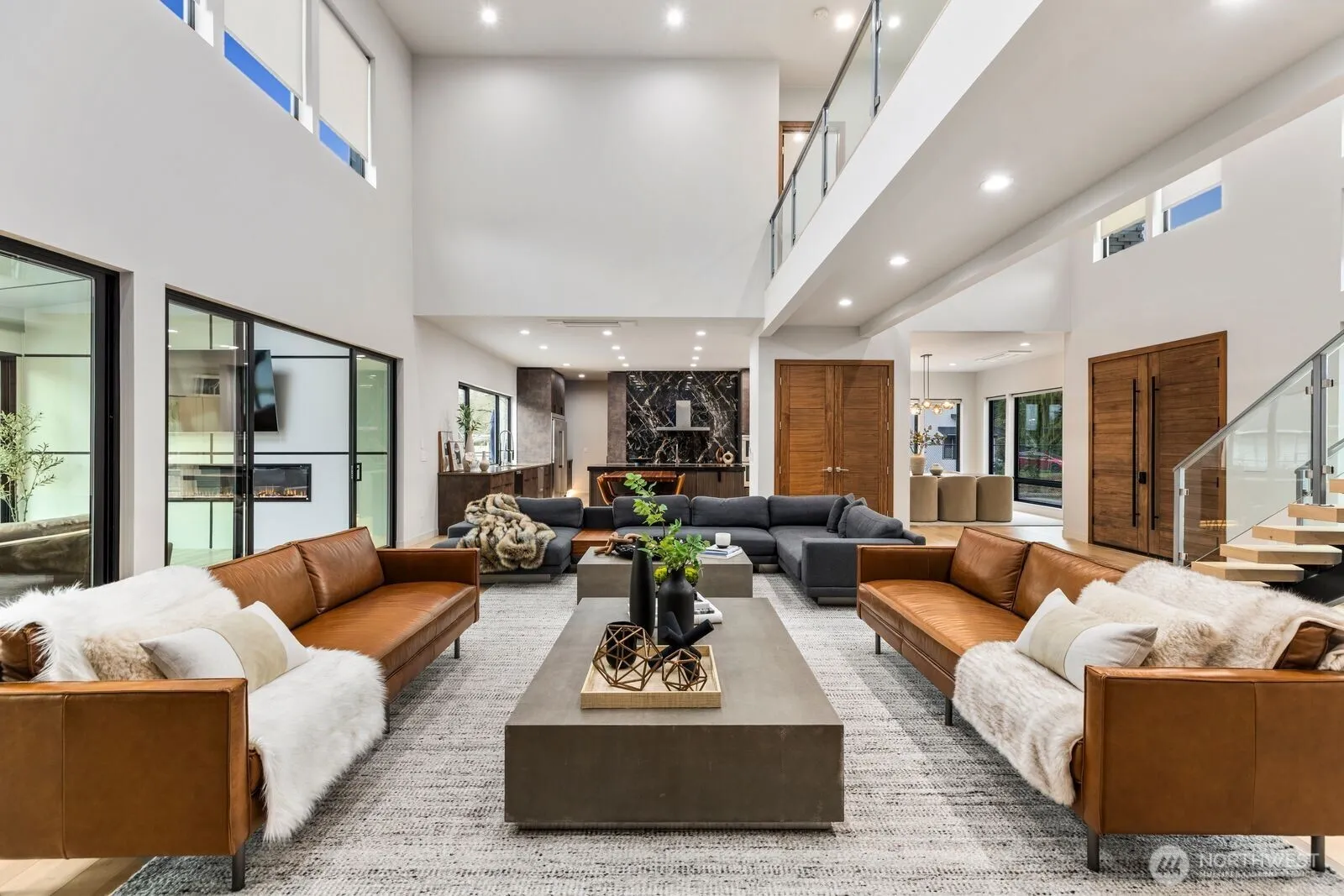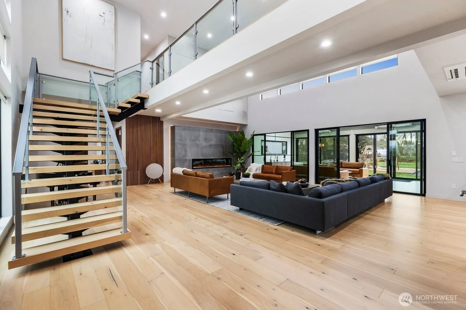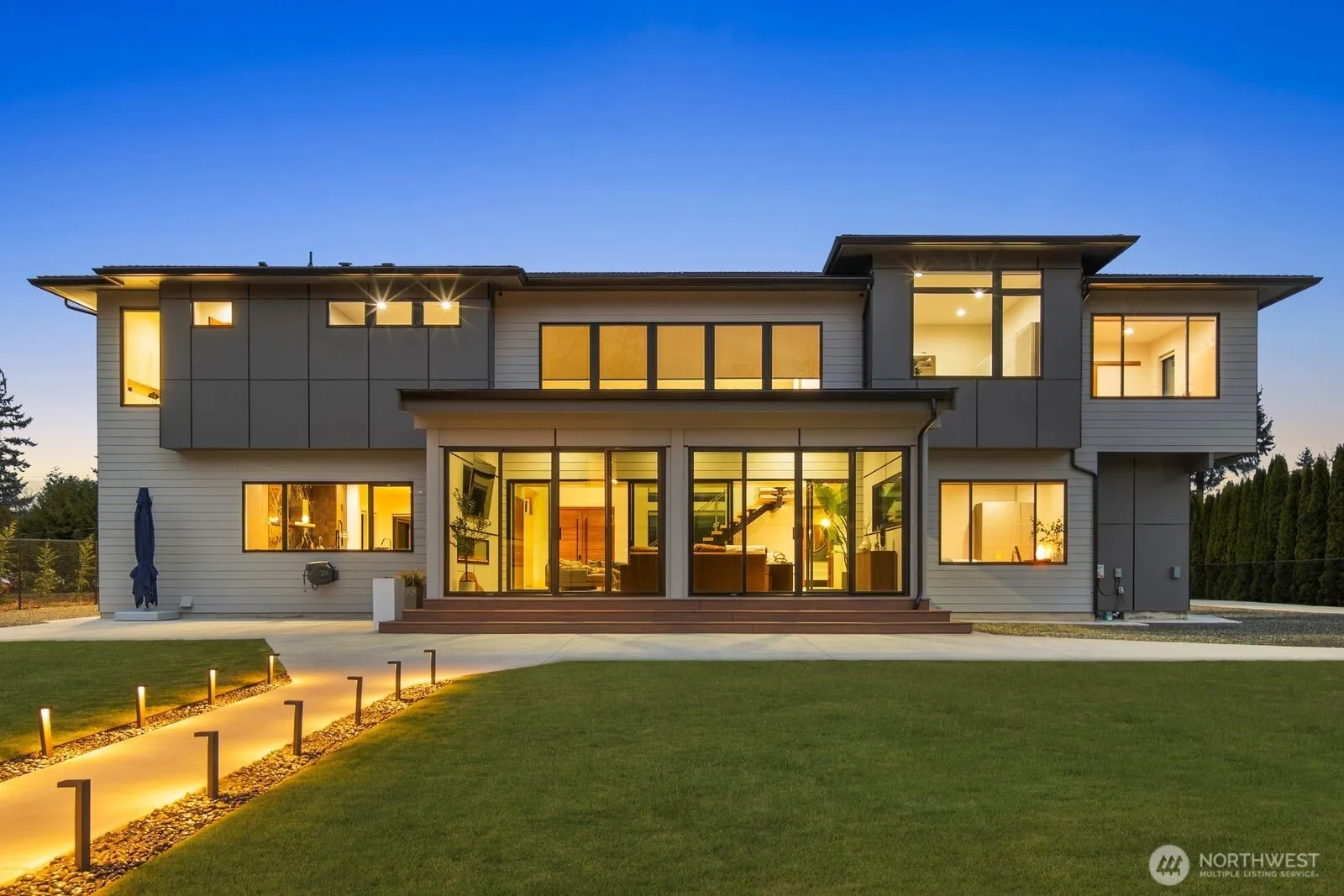 Introducing a once-in-a-lifetime gated private estate set on 1.87 fully fenced acres offering privacy, craftsmanship, and modern luxury. The main residence spans 5,285 sqft with a detached 800 sqft ADU. This custom-built 4-bedroom, 4.25-bath home features imported Italian tile, European engineered oak hardwood flooring, and high-end finishes throughout. A grand entry welcomes you with 10+ ft ceilings, a floating staircase with glass railings, and large windows bringing in natural light, with an open catwalk overlooking the main living area. The chef’s kitchen features Pental quartz, bespoke cabinetry, a statement island with butcher block accents, and three sinks, with a Thermador induction cooktop, double ovens and dishwashers by Fisher & Paykel, oversized Electrolux fridge/freezer, and a butler’s pantry. The primary suite offers heated tile floors and a spa-caliber 5-piece bath with soaking tub, dual-head shower, dual vanities, fireplace, and floor-to-ceiling tile panels. The detached ADU includes a bedroom, bath, sink with cabinetry, heated tile floors, and a 15-person Swedish sauna. An 18×35 shop and 1,092 sqft 3-car garage add flexibility. Outdoor features include a fire pit, enclosed heated deck with entertainment area, a playground, RV parking, EV charging, wired for generator, a second-floor deck with mountain views, and a creek along the back. A rare opportunity to own a custom estate blending luxury, functionality, and modern Northwest living. Schedule a tour today.