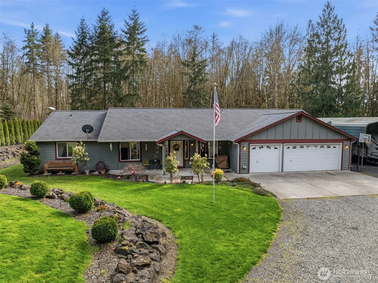 Come see this 3bd 2.5 ba single story home situated in a secluded location at end of street on nearly 2.5 acres! If privacy and space is important to you; this is it! Home is nearly 2400 sq ft and features; Vaulted ceilings, large primary en-suite w/walk in closet, double sinks, open concept eat in kitchen, custom entry way, living room skylights and heat pump for added efficiency. 3 large bedrooms, and a large bonus room that could be used as bedroom, extra living space, gym, or office? Attached 3 car garage offers plenty of space for hobbyist or car people. Outside you will enjoy your private oasis featuring large patio, Gazebo with Hot tub, utility shed with power, covered RV parking with full hookups, greenhouse, and garden space! All of this with plenty of usable yard and parking to indulge in. This home offers an abundance of great opportunities and is sure to impress!