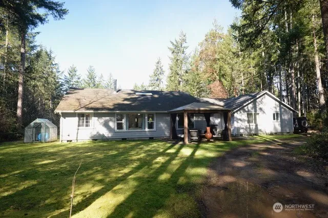 Please BUYERS DO NOT drive up Driveway to View Home w/out your Agent. Acreage Clients needs to see this 2006 Custom Built Rambler that is positioned in the perfect location on this BEAUTIFUL, “Fully Useable” 4.68 ac parcel that also has access off Glenwood Road. This is one of the nicest Rolling 5 acre parcels I have seen in the South Kitsap Area, No Wetlands, full of Fir, Hemlock, Huckleberry & Salal brush, all serviced by Individual Well… Clear what you want & leave the rest natural. Perfect Land for Buyers to make it their Mini Farm with maybe a Barn & some Critters. The Covered Entry & Custom Front Door to this 2292 Square Foot 4 Bedroom 2.5 Bath home opens to “Straight On” view of the Vaulted Living Room, with 3 imposing skylights located perfectly to let the in the Light. All new Flooring, Trim & Interior Paint, Formal Dining Room. Vaulted Ceiling Kitchen keeps the cook included in the Great Room Activity. Entry Office or Bedroom on Right, 2 Bedrooms & Main Bathroom on opposite side of the house as the Primary Bedroom. Oversized Primary Bedroom offers Walk-in Closet & 5 piece Primary Bathroom. Home is Heated & Cooled by Heat Pump but also a free standing Wood Stove in Great Room. Double Door Media Rm could be Office or Extra Bedroom (no Closet)… Buyers Choice of what to use this room for. Priced to sell, come check it out. Seller will be approving “Showing Time” Appointments. A Dishwasher is NOT included in sale.