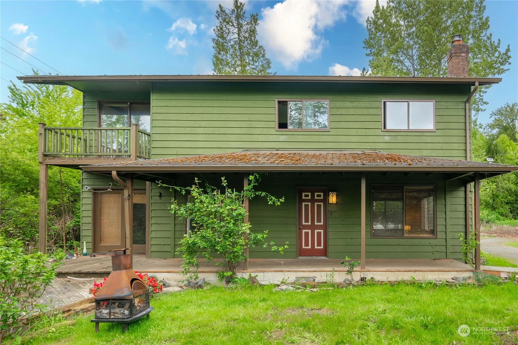 Rare opportunity! Over 4 acres of land, this farm style home is over 1,800 sq. ft. with 3 beds and 2.5 baths. Home features a large kitchen with eating space, separate dining room, wood fireplace, and full length covered porch. Outside you will find a large corner lot with creek, gated entry, detached garage, mature landscaping, ample parking and an rv trailer that will stay with the property. Home does need some TLC. Great opportunity for an investor or home owner looking to make some sweat equity. Location offers the best of both worlds, country living and also minutes away to shopping, dining, and highway access. Centennial trail across the street. Views of snowcapped Mt. Pilchuck from primary bedroom.