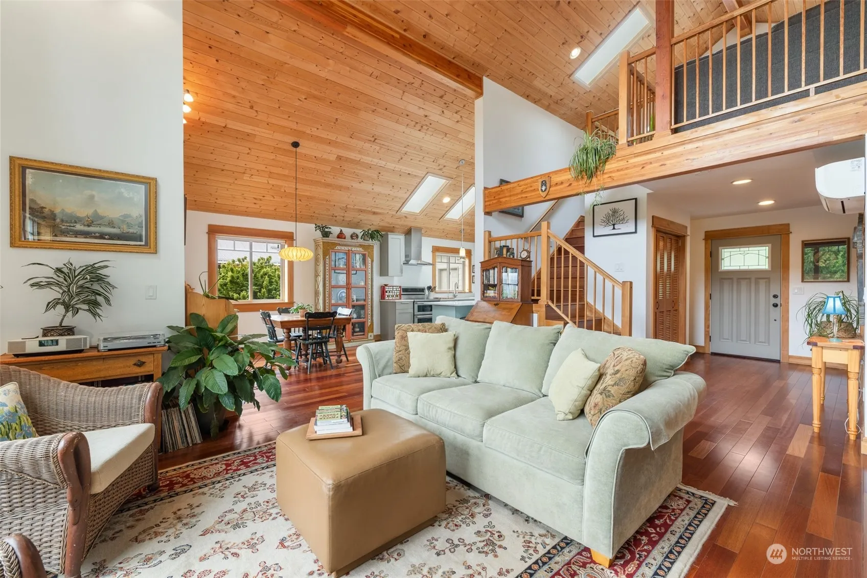 luxurious Freshwater Bay – Salt Creek area retreat. Truly a rare find, combining elegance, functionality, & breathtaking natural beauty. Nestled in a private 5-ac forest with stunning Olympic Mountain views. This Linwood custom home boasts high-end features. The perfect blend of modern touches & timeless design. Quartz, cherry hardwood & vaulted ceilings. The beautiful loft can serve as an office, bedroom or studio. In addition to garage, there is a heated, finished detached shop. Gardens, greenhouse & more.