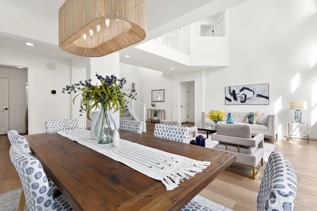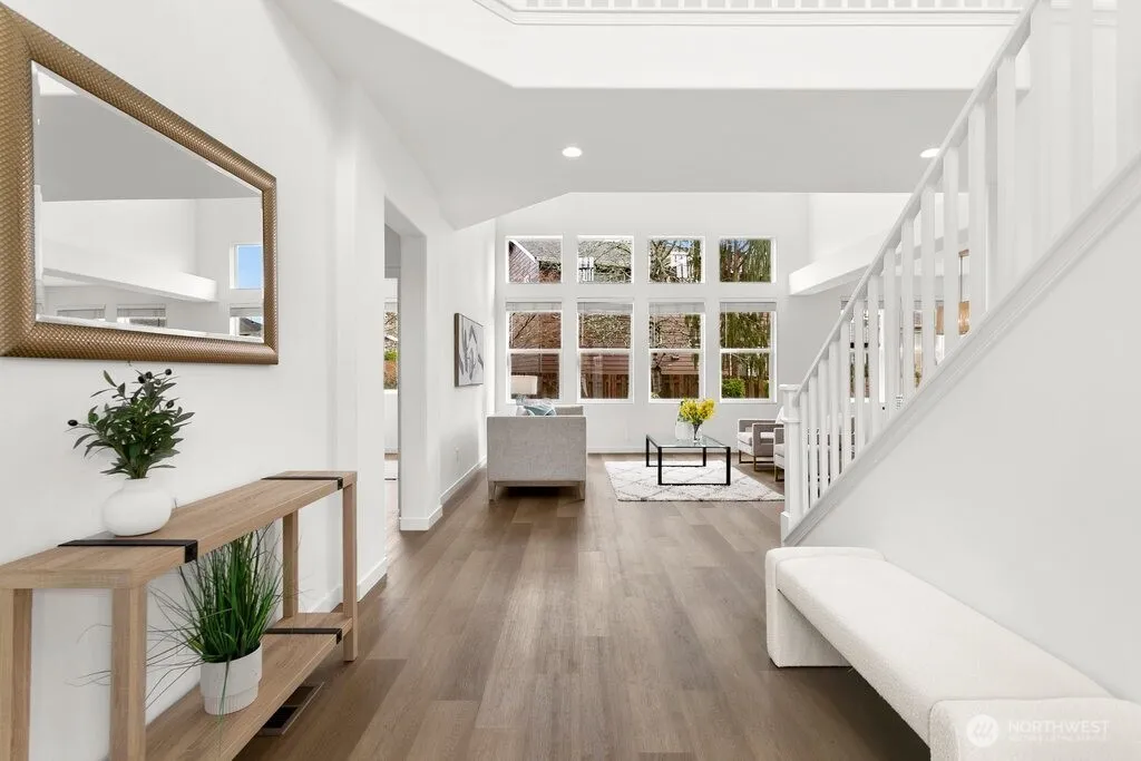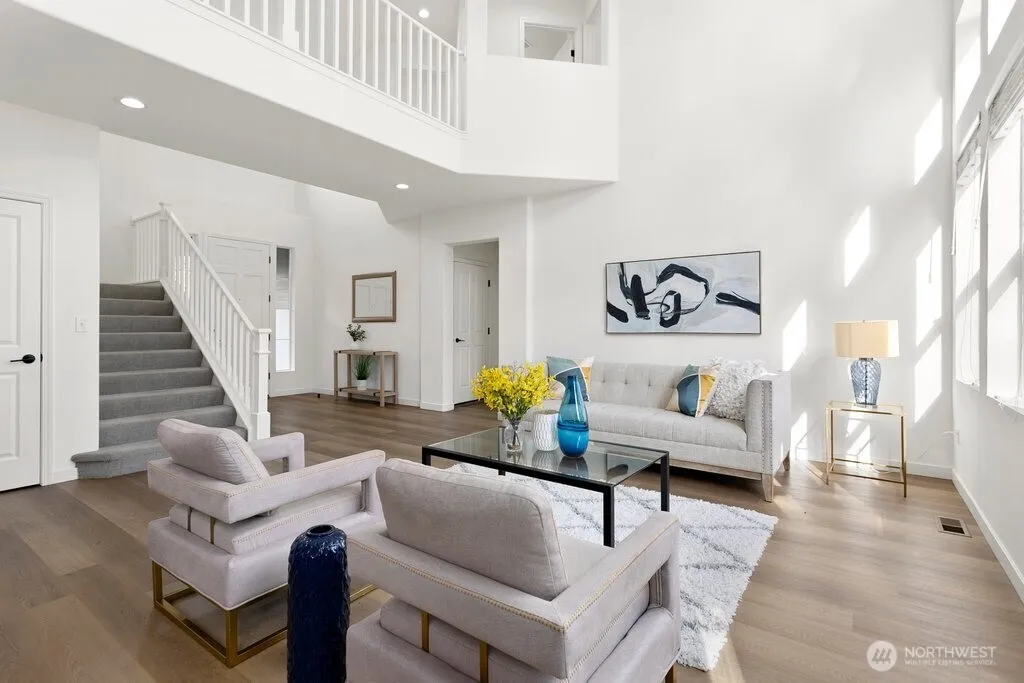 Turnkey home in sought-after Renaissance Ridge! This north-facing 5-bedroom layout includes a main floor bedroom with a full bath, plus an office for flexible living. Soaring ceilings and a dramatic wall of windows create an open, light-filled living and dining experience. The bright kitchen features quartz counters and a center island that flows into the family room, perfect for everyday living and entertaining. Enjoy new laminated hardwood floors on the main level, upgraded bathrooms, and a spacious primary suite with a 5-piece bath. Set on a quiet cul-de-sac with a private yard for outdoor enjoyment, this home also offers a three-car garage and an EV charger installed in 2025. With thoughtful updates and flexible spaces, this home is ready for your next chapter in Renaissance Ridge!