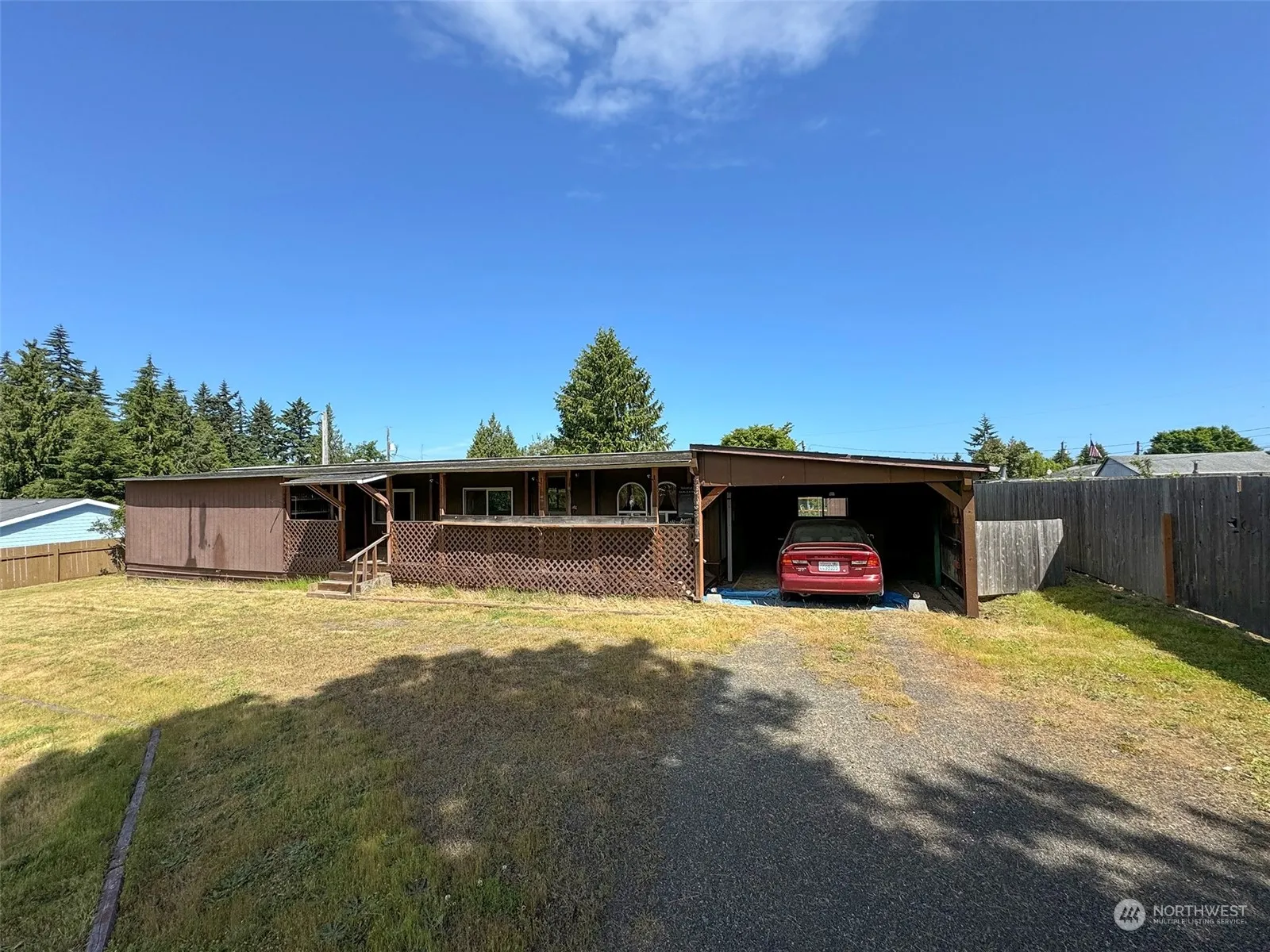 Fully fenced .42 acres, just outside the city limits. Enjoy mountain views from the covered front porch. 1976 single wide has two bed, one bath with one car carport and bonus room off the covered back porch. Garden shed and detached garage. Plenty of room to park RV or other vehicles. Property has been surveyed and is zoned Urban Low Density. Home is being sold as is, no repairs.