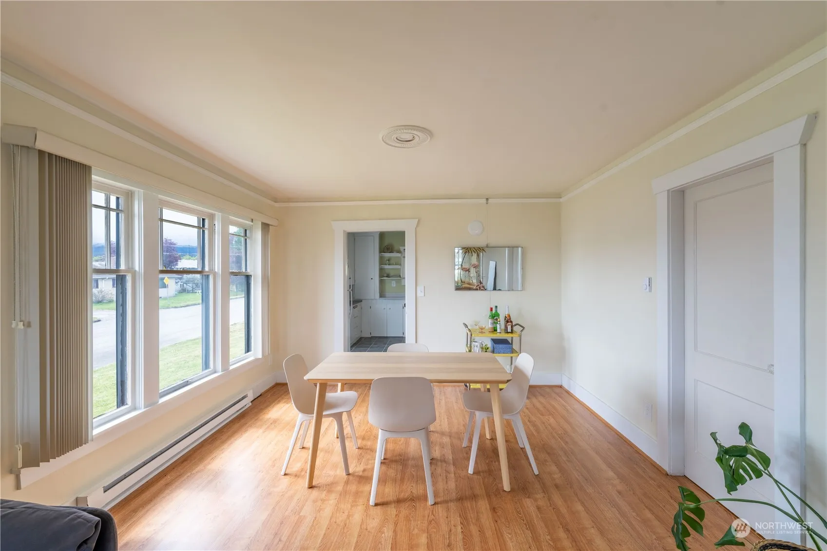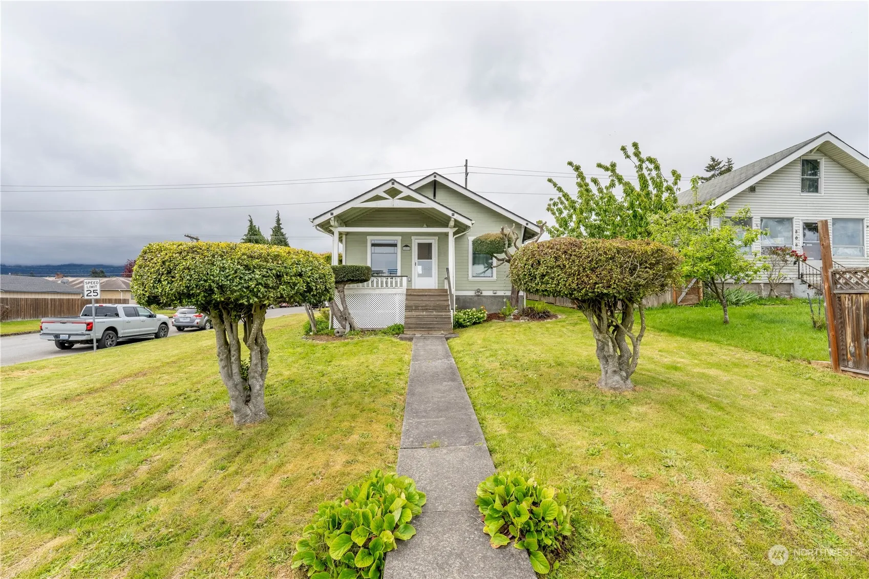 Relax on the covered front porch & watch the cruise ships or enjoy your southern Olympic Mountain view from this charming 5th St home. Large windows throughout bring natural light & views. The spacious kitchen is bright, cheerful, & features a vintage farmhouse sink. Comfortably sized bedrooms- one with a walk-in closet. Washer/dryer are off the kitchen, conveniently out of the way. Fenced back yard w/detached shed offers ample storage. This 100 year old home has glass doorknobs yet she’s newly wired w/a brand-new electrical panel. Close to parks, shopping & more!