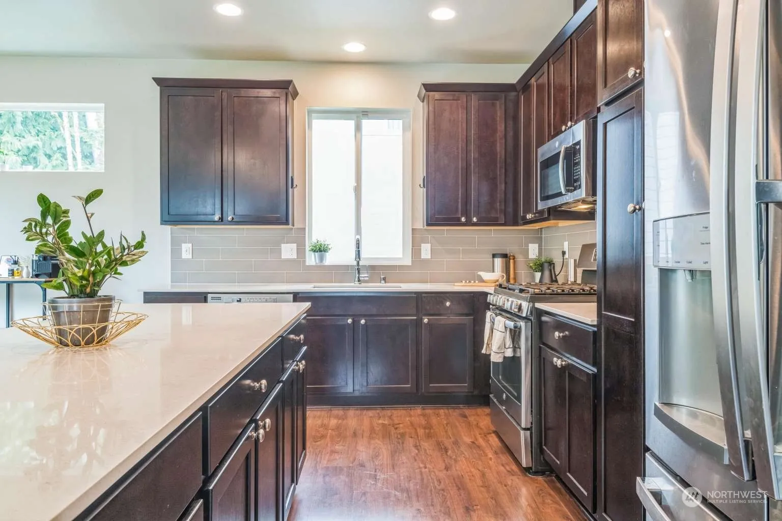 On a quiet street, this 2052 sqft home boasts 3 bedrooms + a versatile loft and 2.5 baths. Its contemporary design and expansive open layout is complemented by an oversized kitchen island, premium gas and stainless steel appliances, and elegant quartz countertops. Enjoy evenings by the gas fireplace and peace of mind with a zone-controlled fire suppression system throughout. The primary bedroom offers a lofty ceiling and walk-in closet, with the option to convert the loft into a fourth bedroom. Notable amenities such as a NEW Tesla Charger Installed, WiFi-enabled garage door and a tankless w/h enhance the modern living experience, with NO HOA fees. A mere 5-min drive from Costco and Target, convenience meets luxury in this desirable abode.