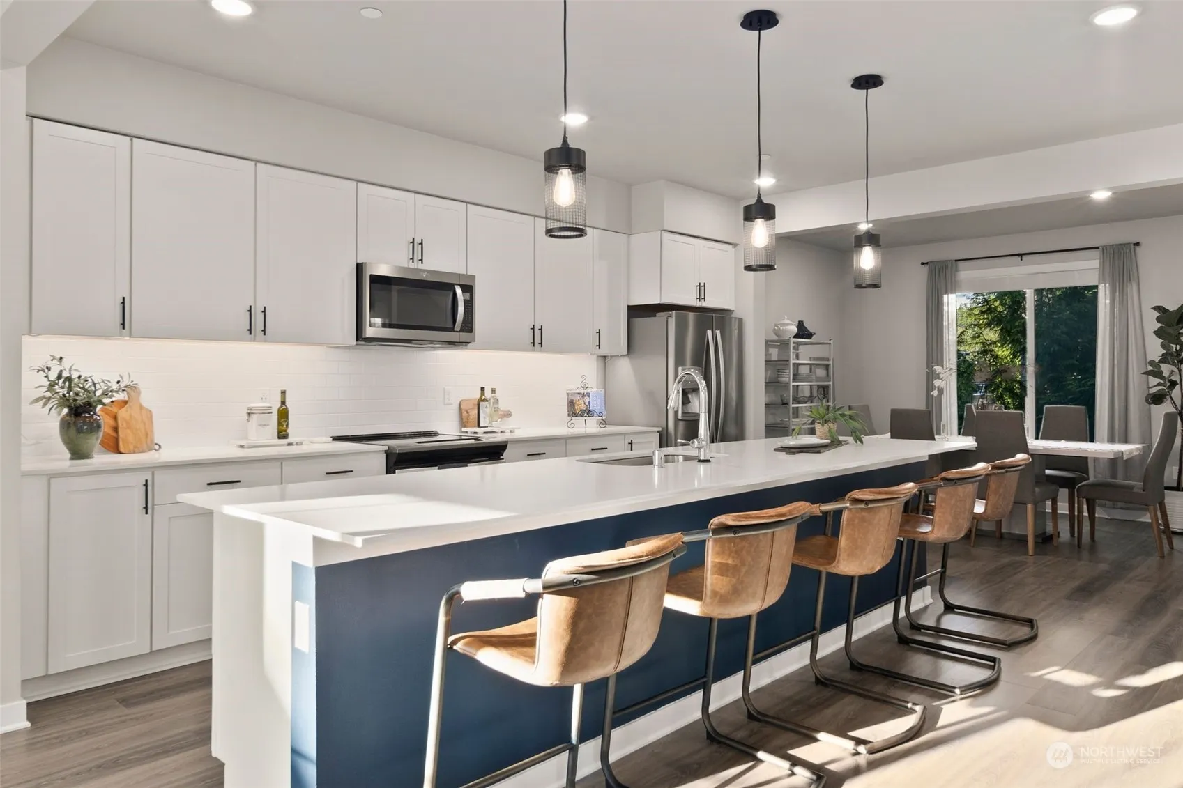 Discover a stunning 4-bedroom, 3.5-bathroom modern townhome designed with luxury and comfort in mind. Featuring upgraded lighting, stylish vinyl plank flooring, SMART technology, and a cozy electric fireplace. Enjoy soaring 9-foot ceilings and a custom workspace. This end unit offers privacy backed by a serene greenbelt. The gourmet kitchen boasts elegant cabinetry, quartz countertops, under-cabinet lighting, a massive island, walk-in pantry, and stainless steel appliances. Community amenities include a dog park, fire pit, playground, and scenic trails. Just minutes from the lake, Costco, and downtown Snohomish. Welcome home!