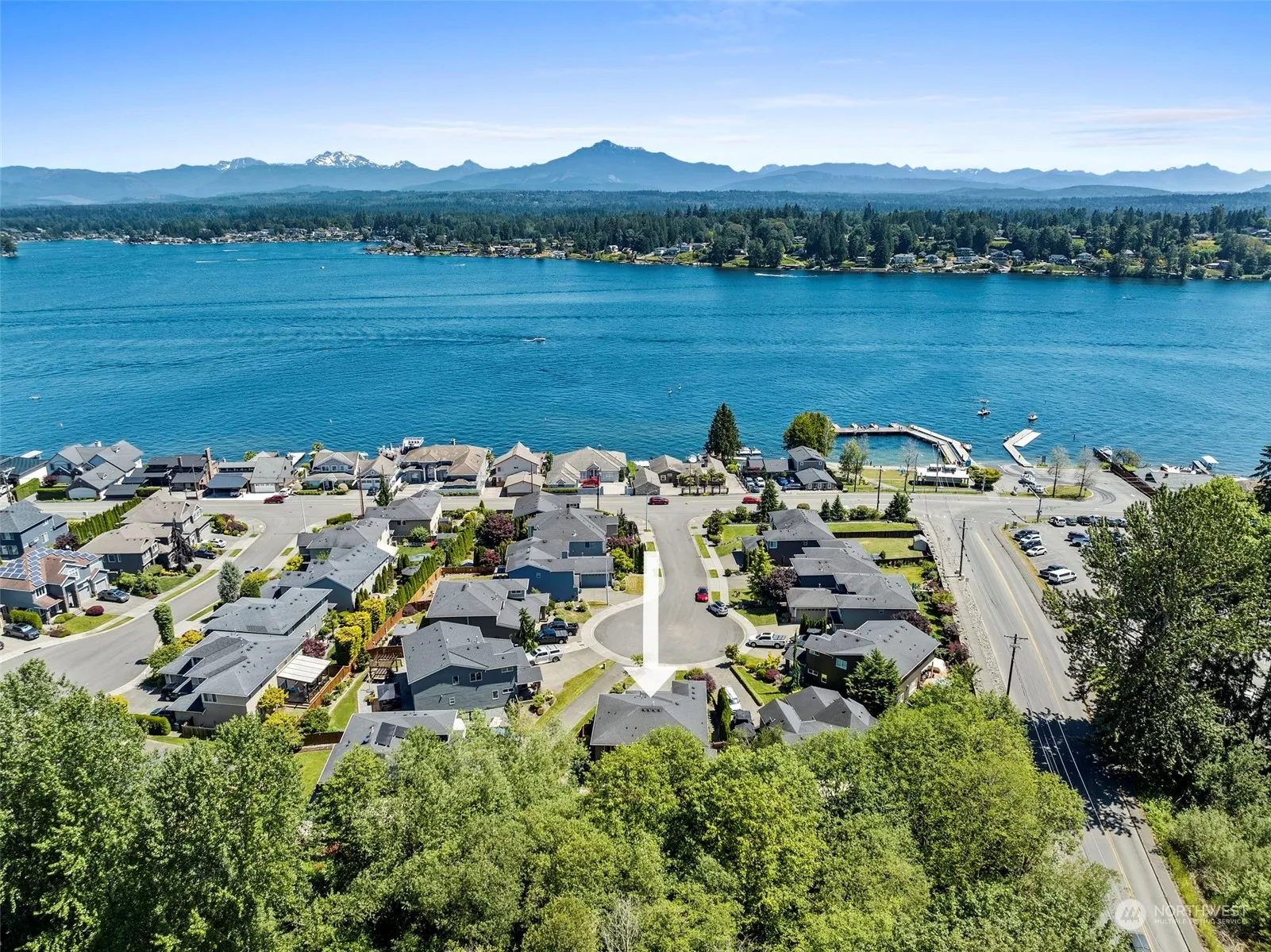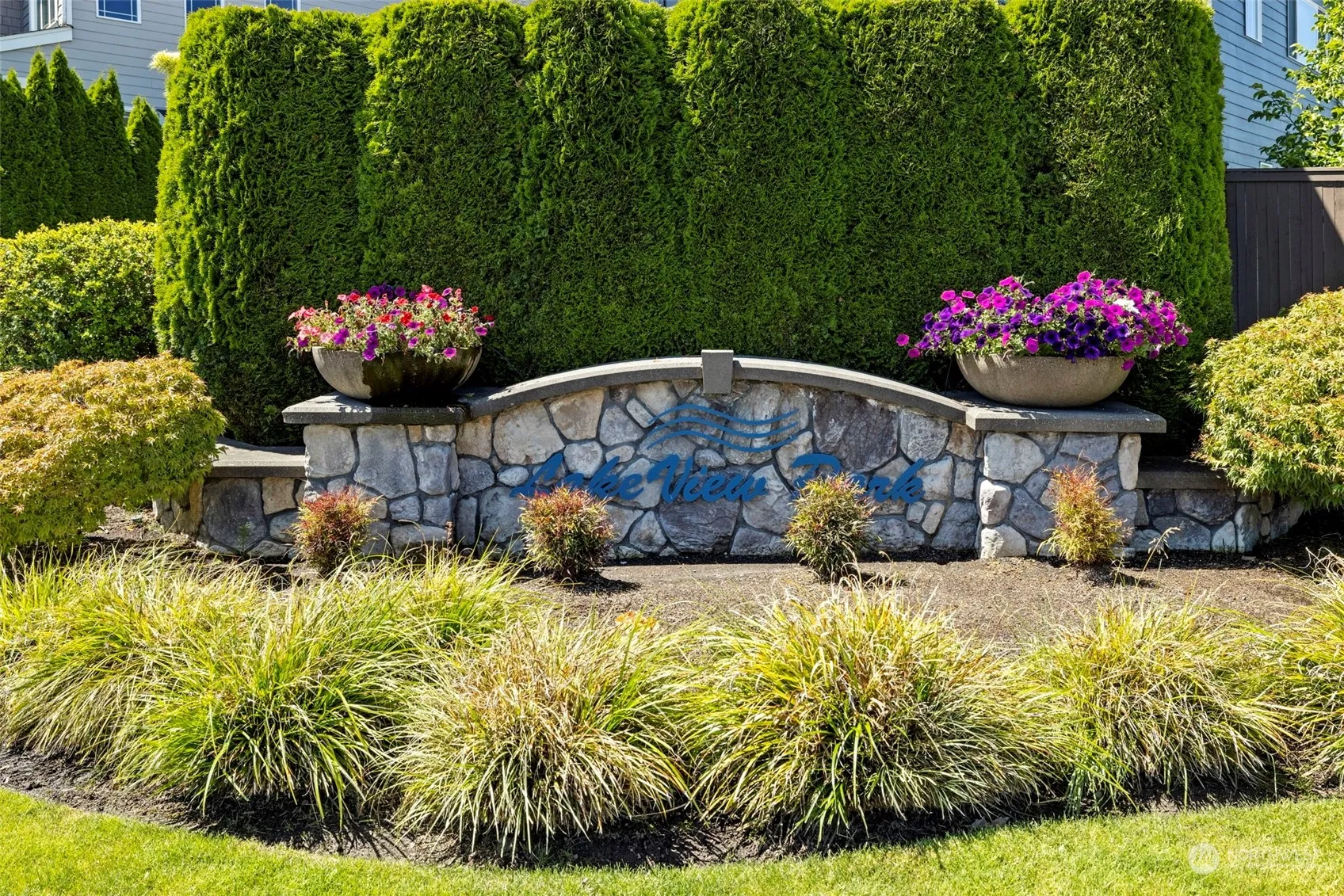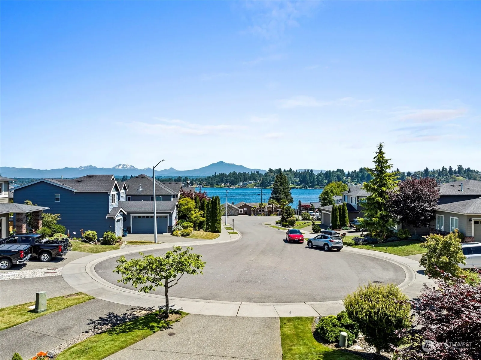 Welcome to Lakeview Park! 1 owner since new, off cul-de-sac, perched to boast lake, mountain & skyline views! Stunning clear story foyer. Home office & adjacent stylish 1/2 bath. Circular kitchen layout. Center island, breakfast bar, ss appliances, gas cooktop w/hood. Pantry + storage closet. Dining room w/serving bar niche. Great room concept w/fireplace, a gathering hub. Dual gated, fenced, back & side yards. 2 court yards + deck overlooking NGPA. Wide stair case to upper-level owners retreat + full bath en suite. 3 additional bedrooms share a full bath. Laundry room window & folding counter. A/C. Storage shed off E courtyard. 3 car garage + driveway pkg. Low dues. Seconds to Davies Beach & boat launch, minutes to downtown, & the Village.