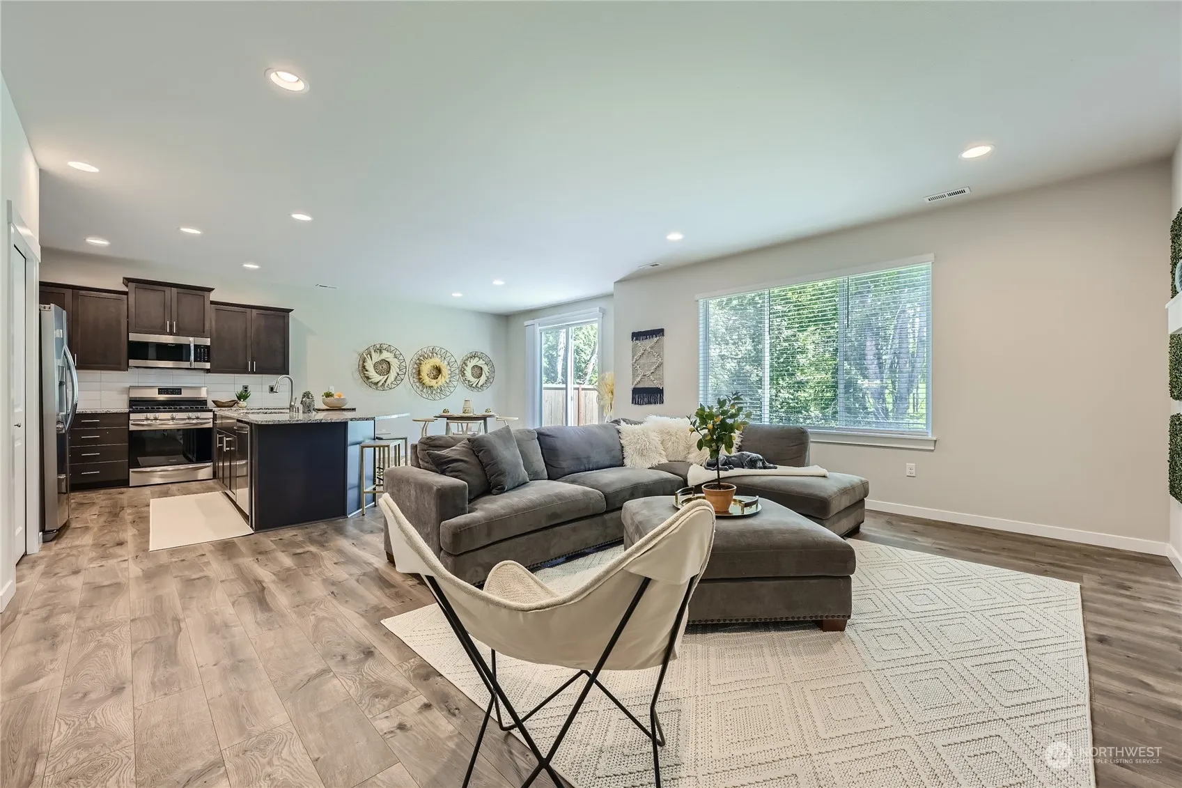 Discover serene Northwest living in this immaculately maintained home located in the Timbers subdivision. Designed with an airy open concept, this residence features expansive windows and high ceilings that invite natural light. Gourmet kitchen is a chef’s delight w/ spacious island, quartz countertops & sleek stainless steel appliances. Comfort meets luxury in the main floor bedroom with a nearby 3/4 bath & grand primary suite with a 5-piece bath w/ exansive walk-in closet. Fully fenced yard with a picturesque backdrop of lush trees—a perfect private oasis for relaxation or entertaining. Nestled just moments from neighborhood parks and trails, and award winning schools! Pre-inspected and 1 year home warranty included. Welcome home!