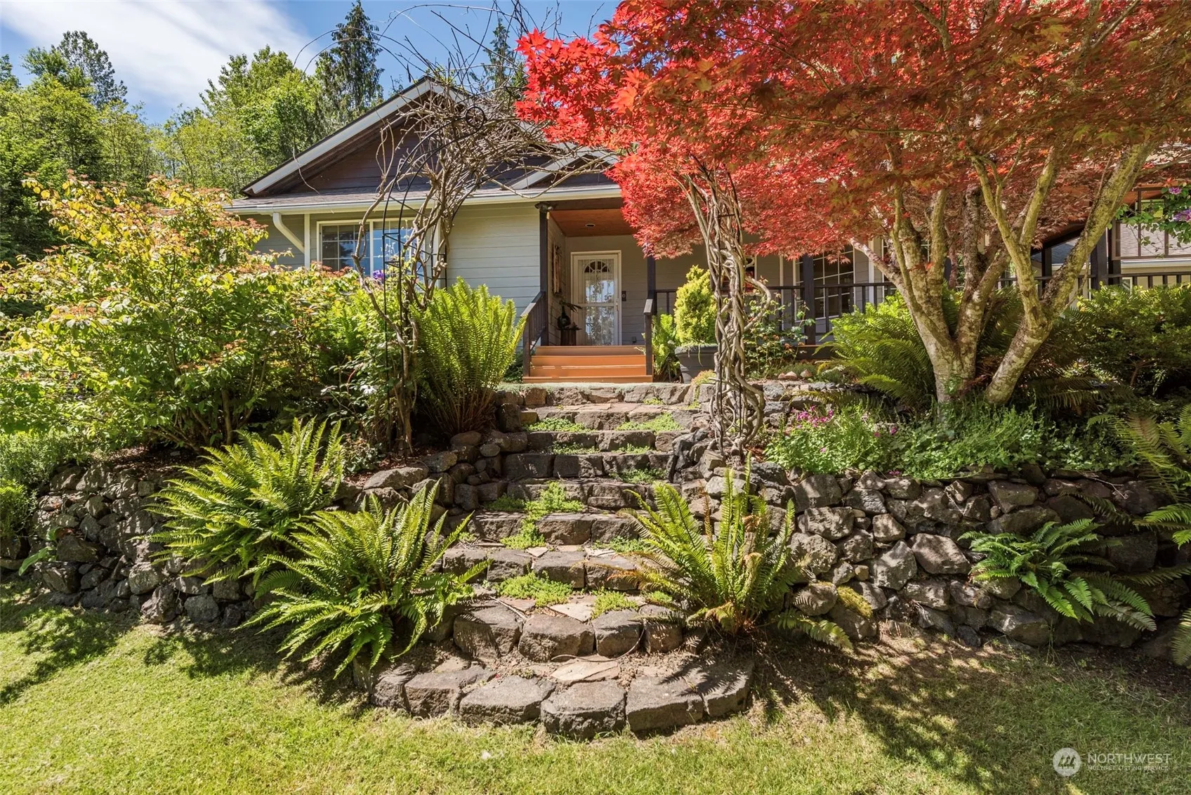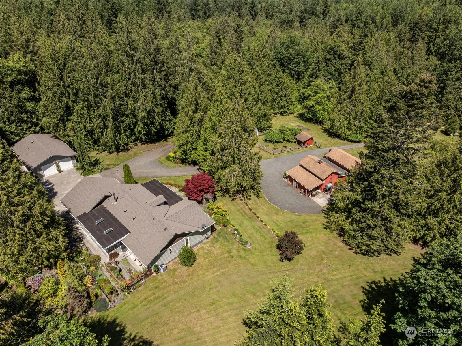 Beautiful home & guest house with large barn on 5 acres plus two more adjacent undeveloped parcels with walking trails totaling nearly 15 acres. Updated 2 BR main house of 2238 SF plus a cozy 1 BR guest home of 560 SF, ideal for guests or passive income. The grounds are like a well planned arboretum with ponds, water features, an orchard, hundreds of colorful flowers and carefully crafted walking trails throughout your own lush forest. The property abuts the Olympic Adventure Trail leading to Lake Crescent!