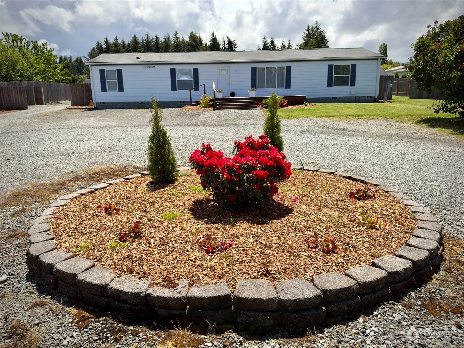 Looking for the perfect shop and home combo? This property features a spacious 2400 sq ft shop with five garage doors, equipped with both 110v and 220v outlets in the floor, providing ample space for your cars, toys, and RV parking.Move-in ready home boasts a split floor plan with 4 bedrooms and 2 baths, including a primary bedroom set apart for privacy. The kitchen is a dream, beautiful granite countertops and brand-new refrigerator and dishwasher. Nestled on a fully fenced acre. Beautifully landscaped yard includes an apple tree and thriving raspberries, offering a serene outdoor retreat. This is the ideal blend of functional workspace and comfortable living! The shop is fully insulated and roof is only 7 years old!