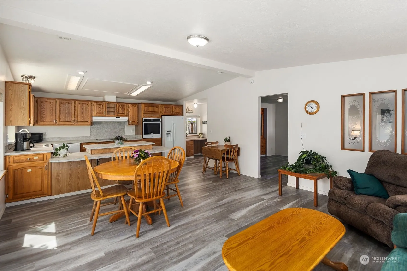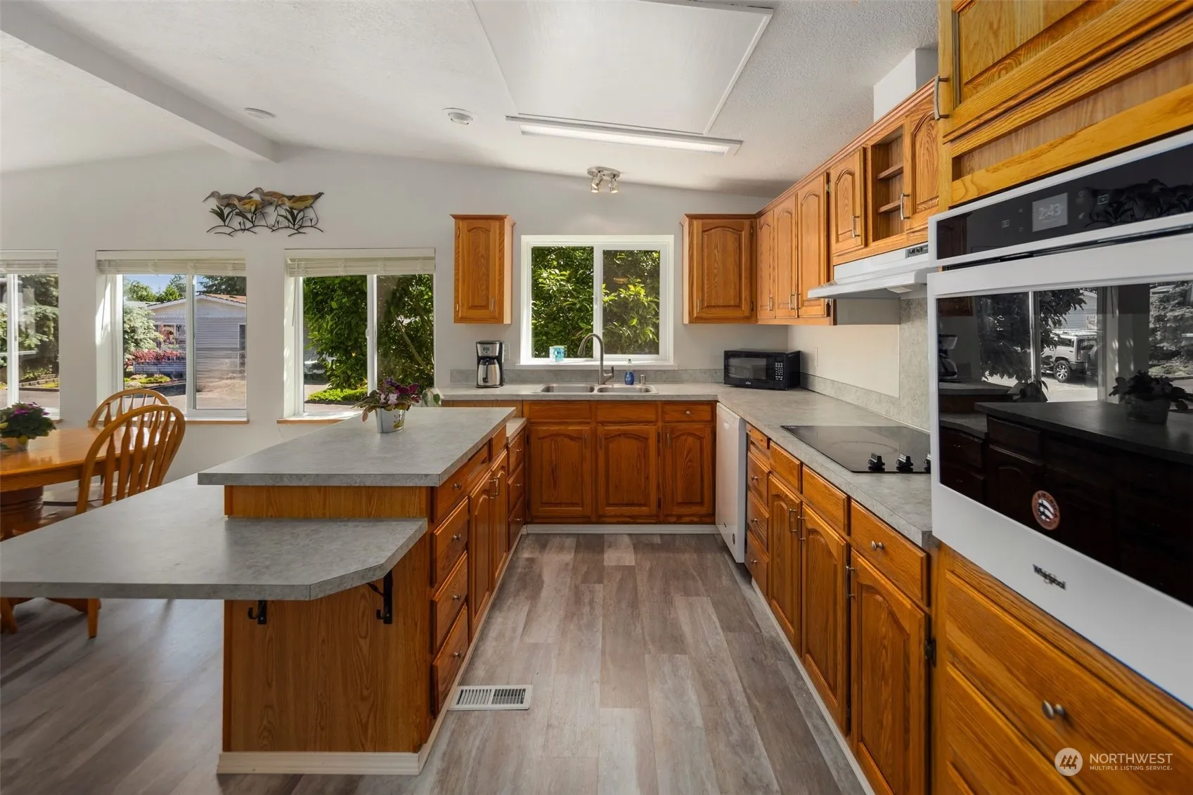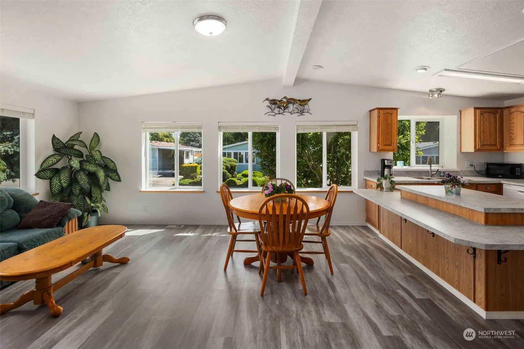 Beautifully updated 3-Bed, 1.75 bath home in the highly desired 55+ Cardinal Estates community park. Open concept living room boasts an expansive dining area w/kitchen and breakfast bar. Inviting formal living room w/vaulted ceilings and ample space for relaxation or entertaining. Generous primary w/walk-in closet, 5-piece bath and private entrance to the deck and serene back yard. Experience an abundance of natural light in every room plus oak cabinetry including a built-in desk & hutch. 2021 Heat pump with A/C. Spacious laundry room w/utility sink. Partially fenced back yard, covered parking & large storage shed equipped w/electricity. Enjoy peaceful living, conveniently located near restaurants and shopping!