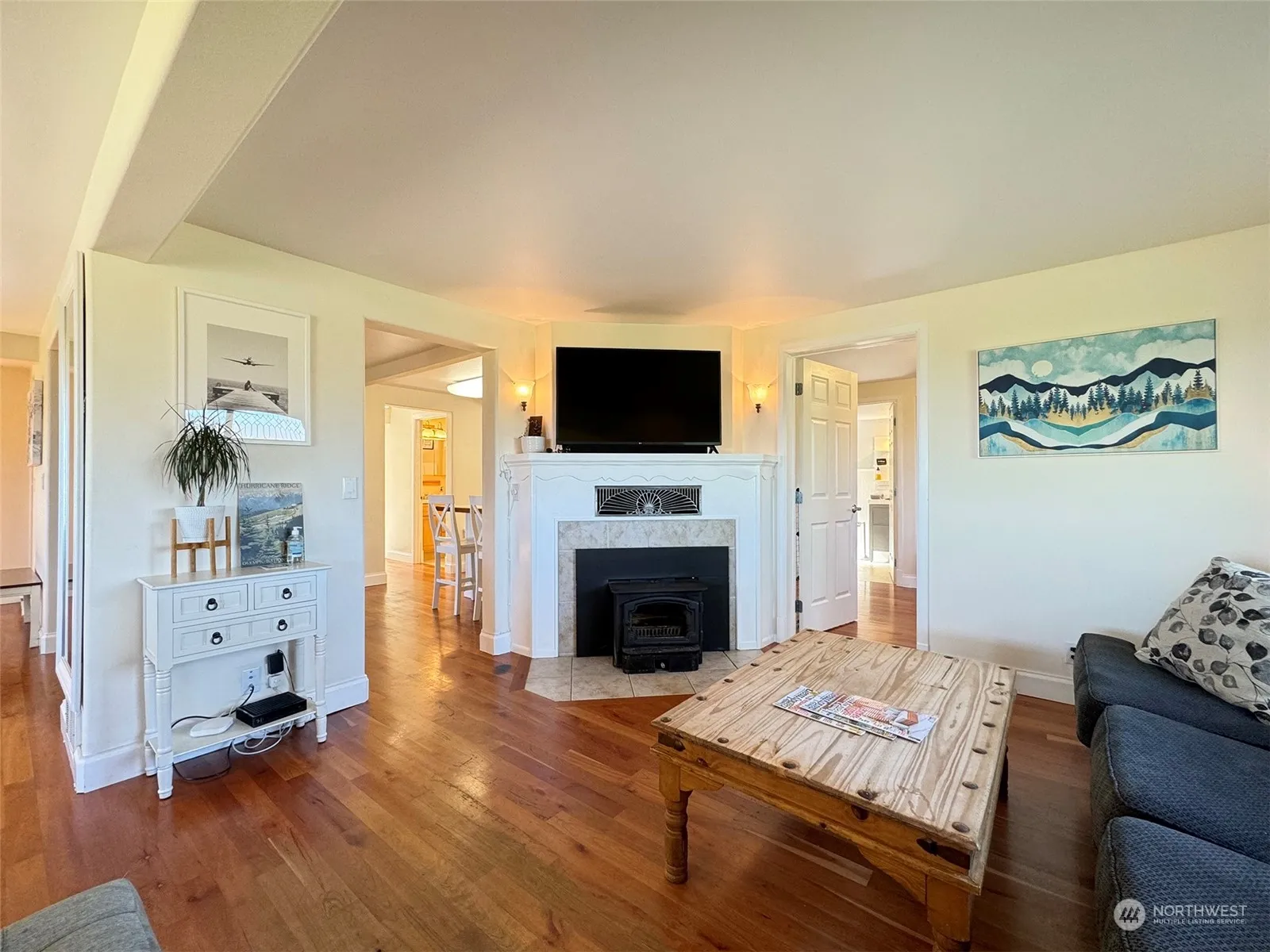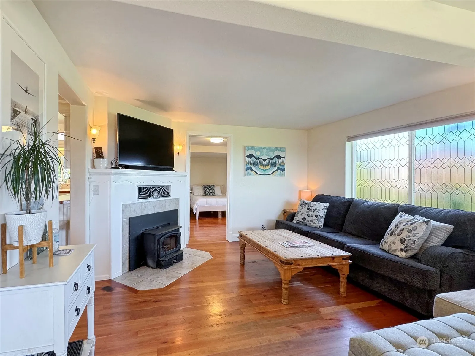 Comfortable, updated cottage with hardwood floors throughout, in a very convenient location with partial views of the strait and Mt Baker. First floor primary bedroom and open floor plan is inviting with the wood stove insert for a relaxing atmosphere. Fully fenced yard with security gate for the large, double- corner-lot safeguards outdoor activities and pets. Large two car garage with workshop space and room for toys. Space for a garden with several fruit trees and landscaped shrubberies; rhododendrons, golden chains, clematis maple trees and more. South facing deck is the spot for the BBQ.