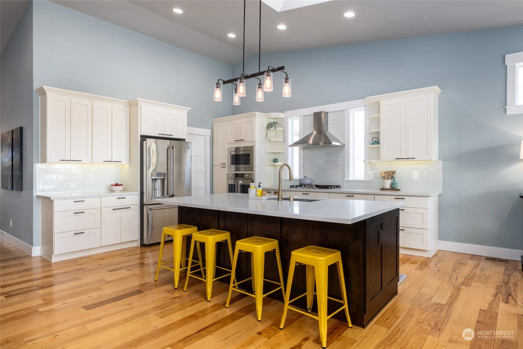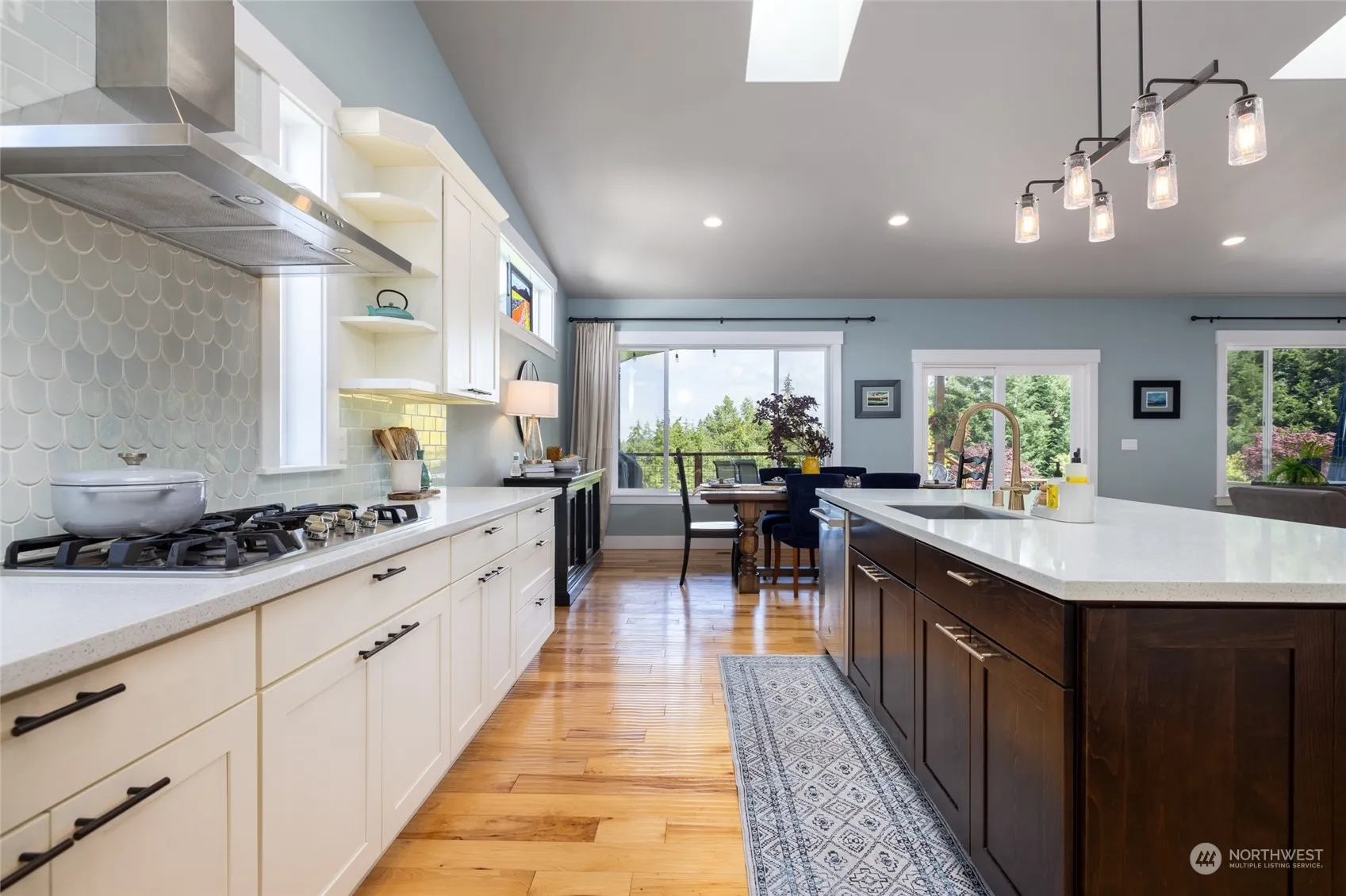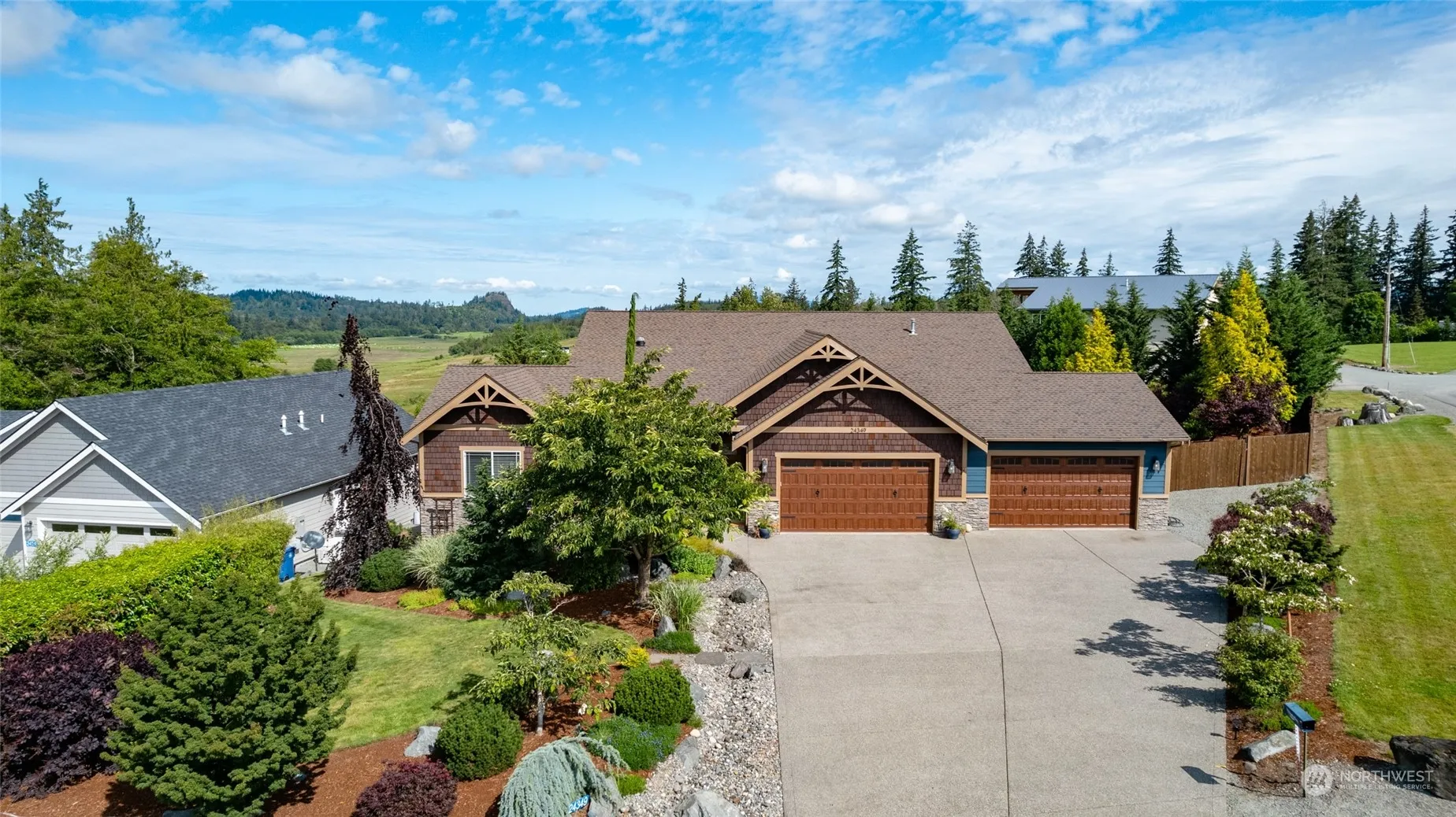Discover this extraordinary custom-built luxury home, featuring 3461 sqft on a half-acre landscaped lot offering privacy and Northwest living. The main floor boasts a spacious open great room with vaulted ceilings, skylights, and expansive views. The chef’s kitchen includes custom cabinets, pull-outs, under-counter lighting, a custom tile backsplash, a walk-in pantry. The primary suite offers a grand custom tile shower, spacious walk-in closet, and champagne bronze fixtures. Downstairs features a media room, office, full bath, and flex room/ 4th bedroom. Outside, enjoy a fenced yard with a covered heated patio, gas BBQ, fire pit, and fenced yard. Includes a massive four-car garage. Ideal for luxury seekers in a serene setting.