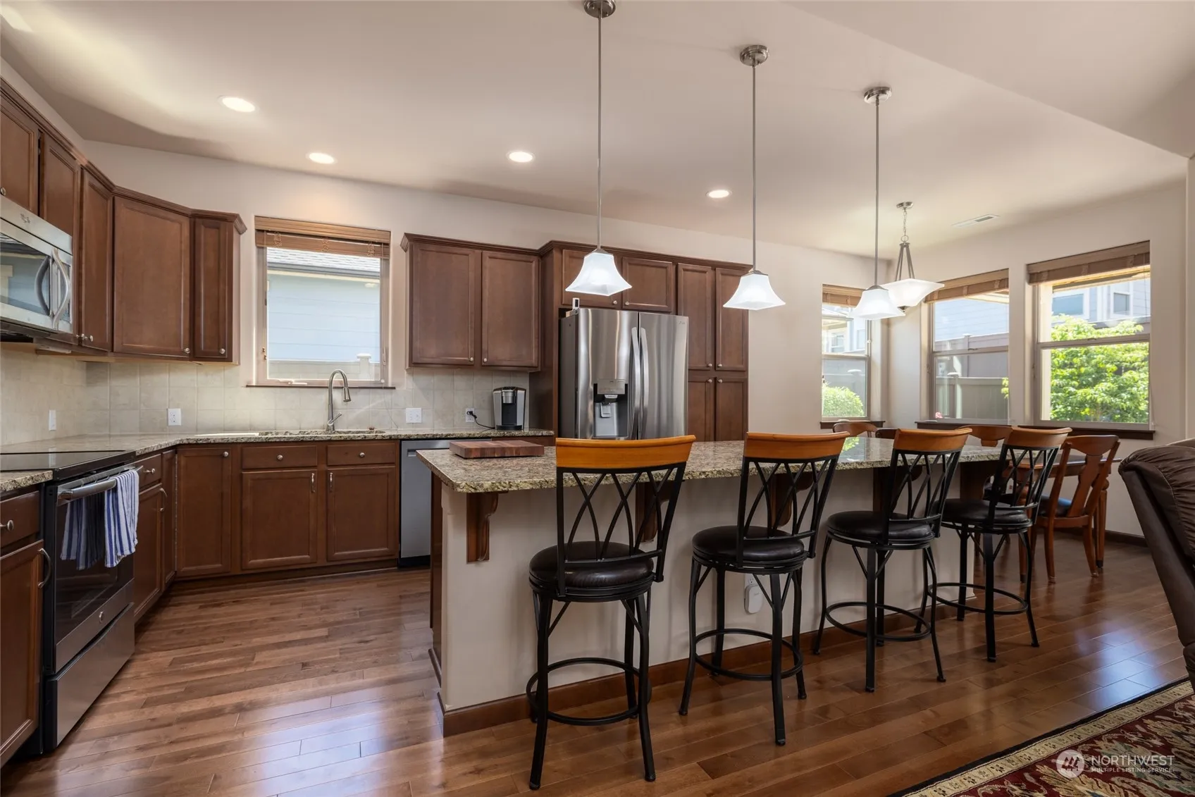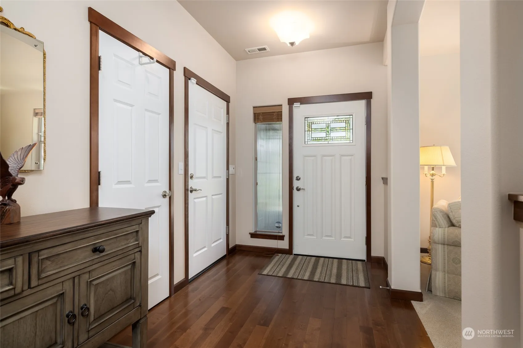 Beautiful 3 bed/1.75 bath LEVEL ENTRY home built by Landed Gentry in desirable Montreaux 55+ community. Over 1850/sf of living space with open great room design, plus separate formal sitting room. Kitchen features granite counters, stainless appliances, built-in pantry, pull-out shelving, large island w/seating, plus dining area. Great room with upgraded gas fireplace & hardwood floors. Primary suite has private bath w/double vanity, granite counter, walk-in shower & walk-in closet. Laundry w/utility sink. Covered patio plumbed for gas BBQ. Low maintenance yard. SunSetter automatic shades on key windows. Attached two car garage upgraded to add five additional feet of space, lots of storage.